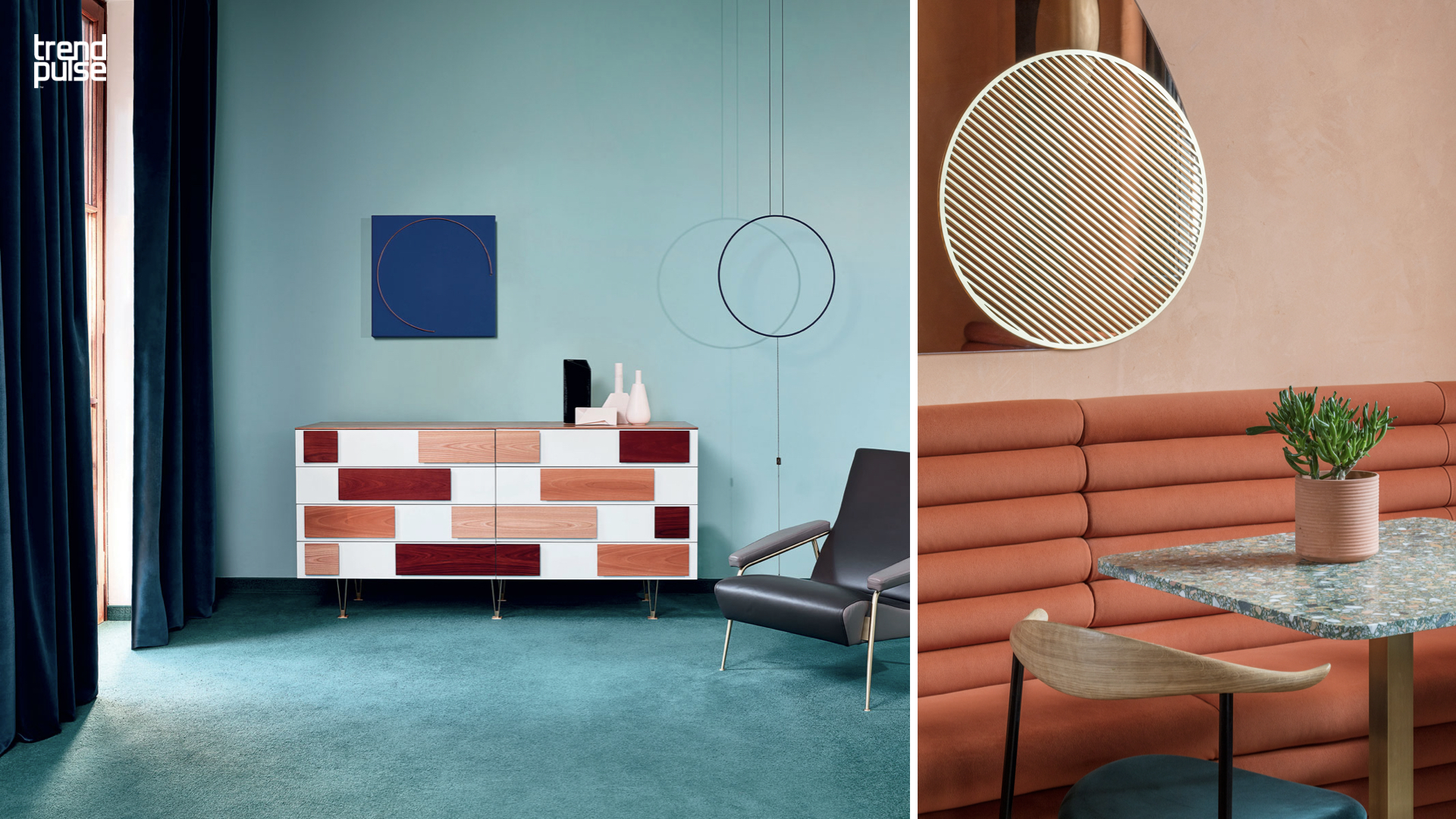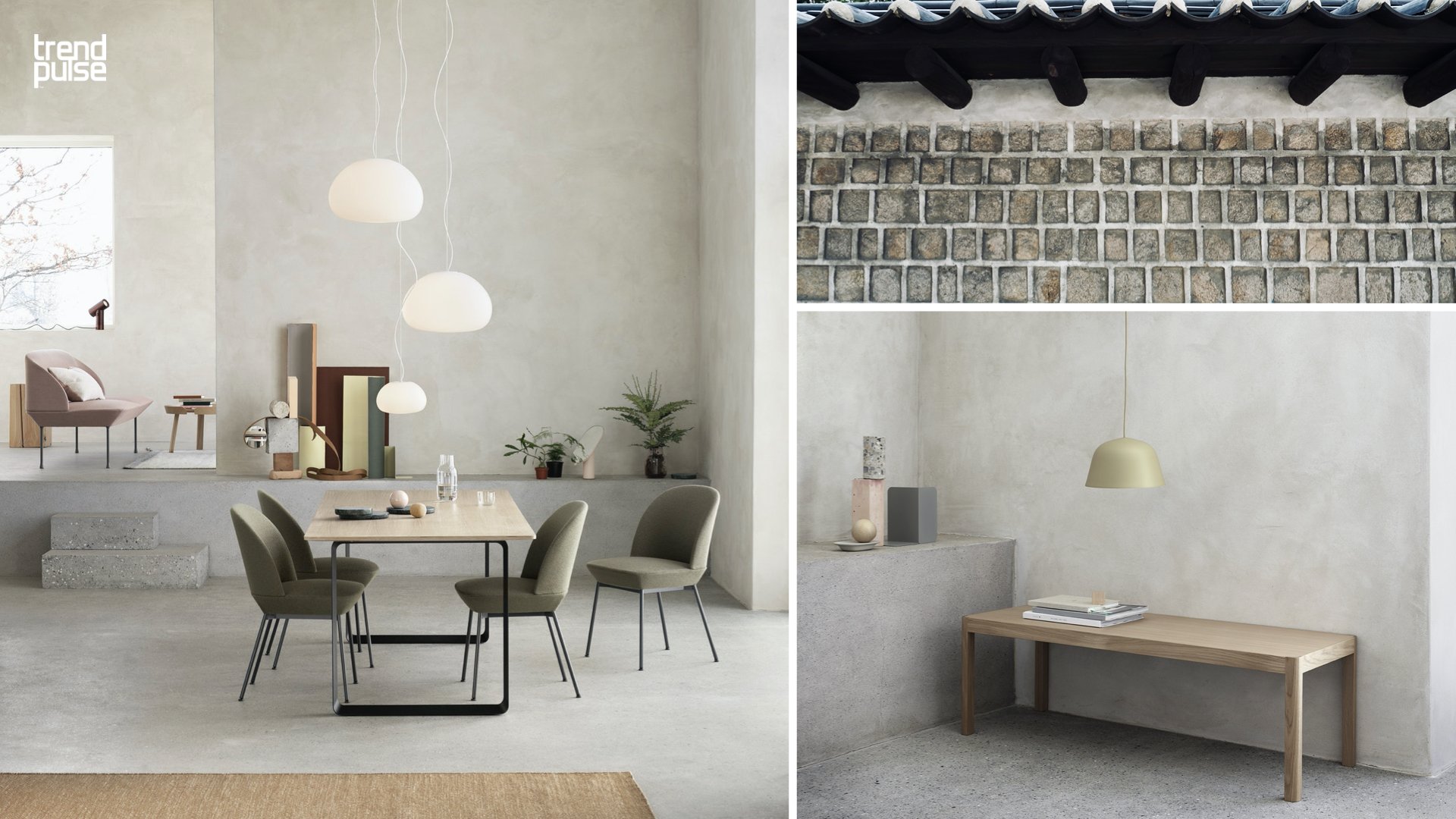 강렬한 복고적 컬러 외에도, 많은 이들이 선호하는 그레이(grey)는 투박하거나 거친 마감과 함께 쓰여 조금 더 따뜻한 느낌으로 연출되거나, 오렌지 빛과 같은 포인트 컬러를 부드럽게 살리는 역할을 한다.