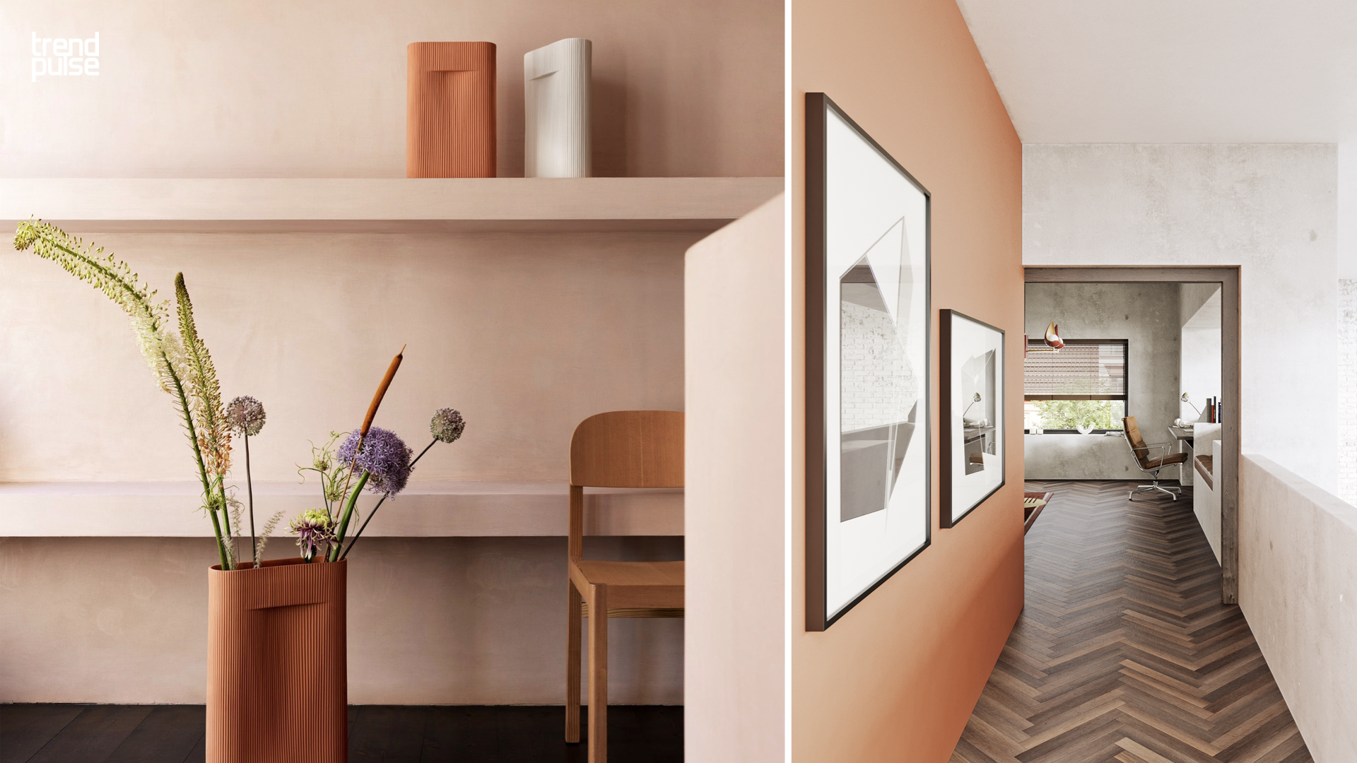전체적으로 베이스 컬러는 황토빛이 맴도는 미색, 그리고 지난 시즌에도 제안드렸던 테라코타(terracotta)의 적토빛이 조금 더 부드럽게 적용된다.