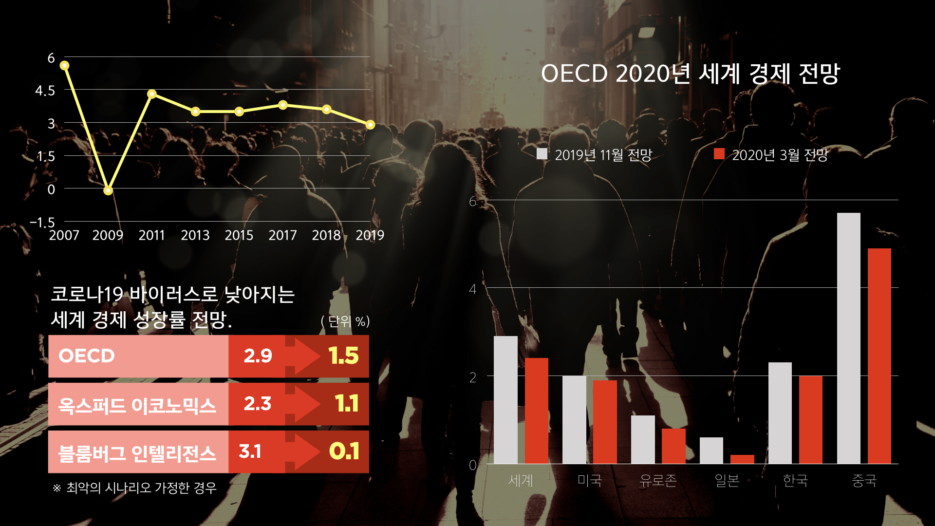 2019년 저점을 기록하며 조금 나아지고 있었던 세계 경제를 다시 바닥으로 곤두박질치게 한 것이다.