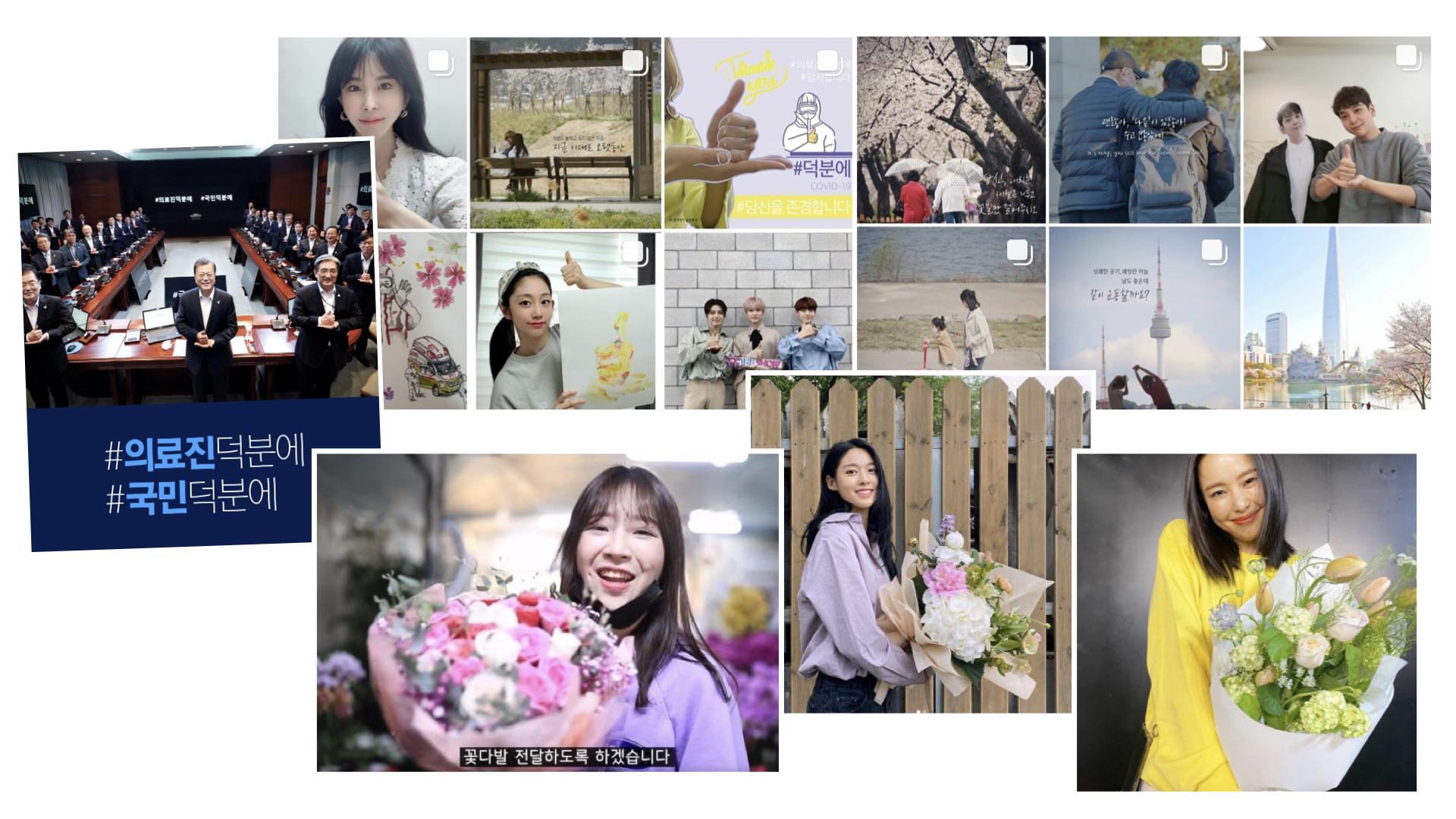해외에 #stayathomechallenge가 있다면 우리나라에서는 #덕분에챌린지, #부케챌린지가 있다.