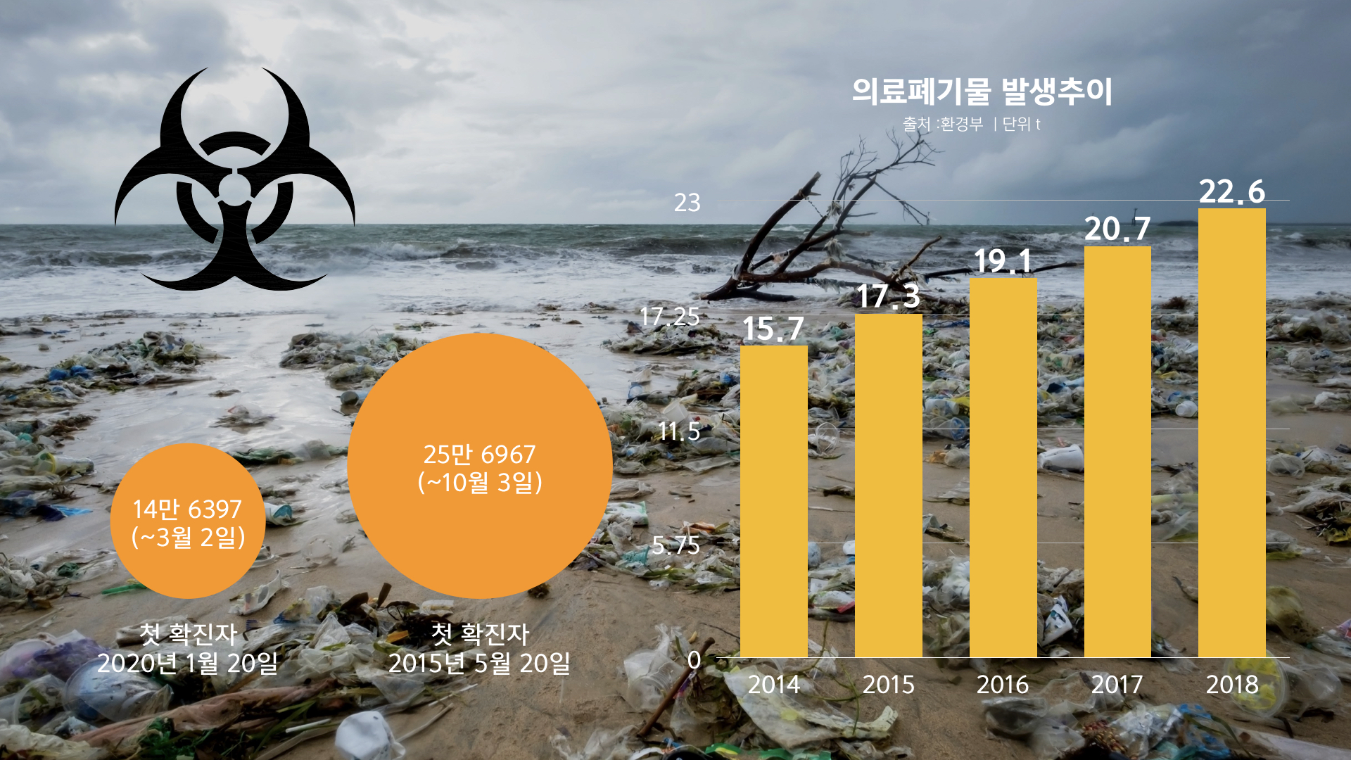 이미 포화상태에 이른 의료폐기물 처리양이 매일 발생하고 있는 코로나19 바이러스 의료 폐기물로이