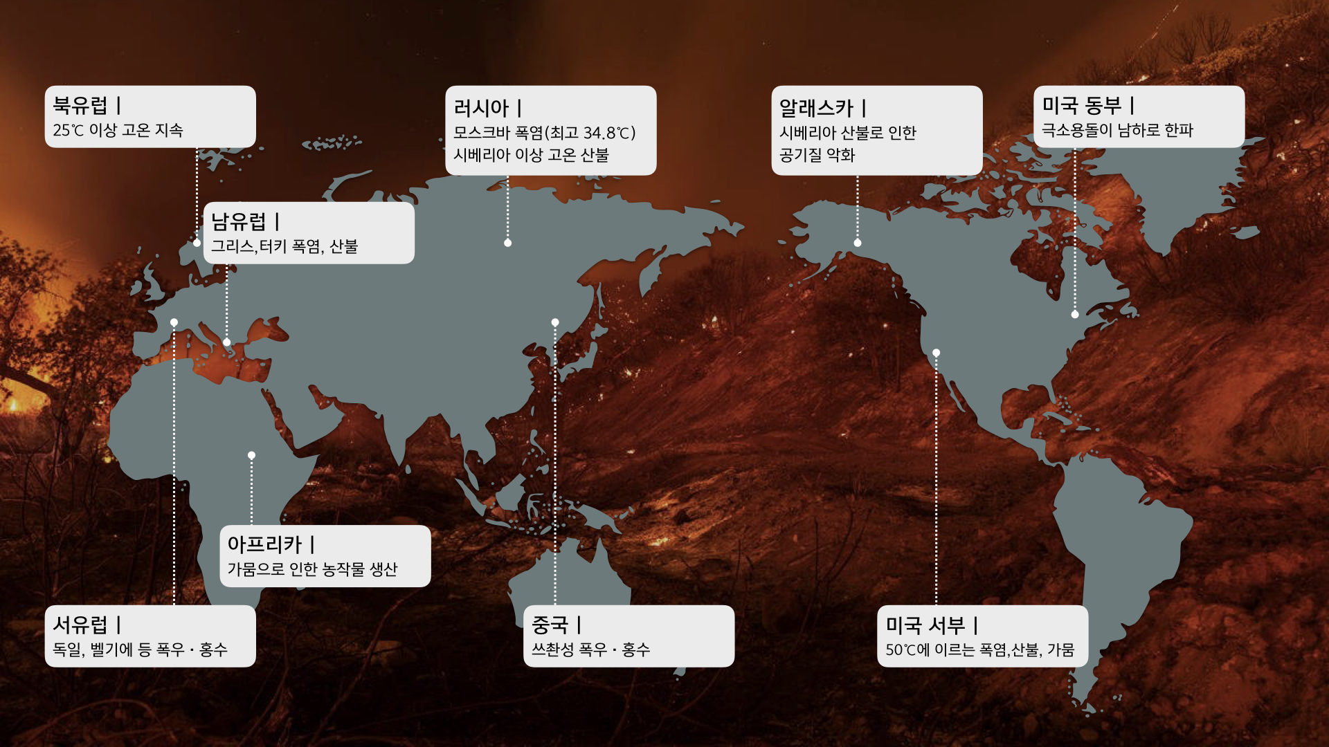 전세계 곳곳에서 나타나고 있는 이상기후 현상의 원인이 가속화되고 있는 지구 온난화 라는 것을 상기시켜 준다.