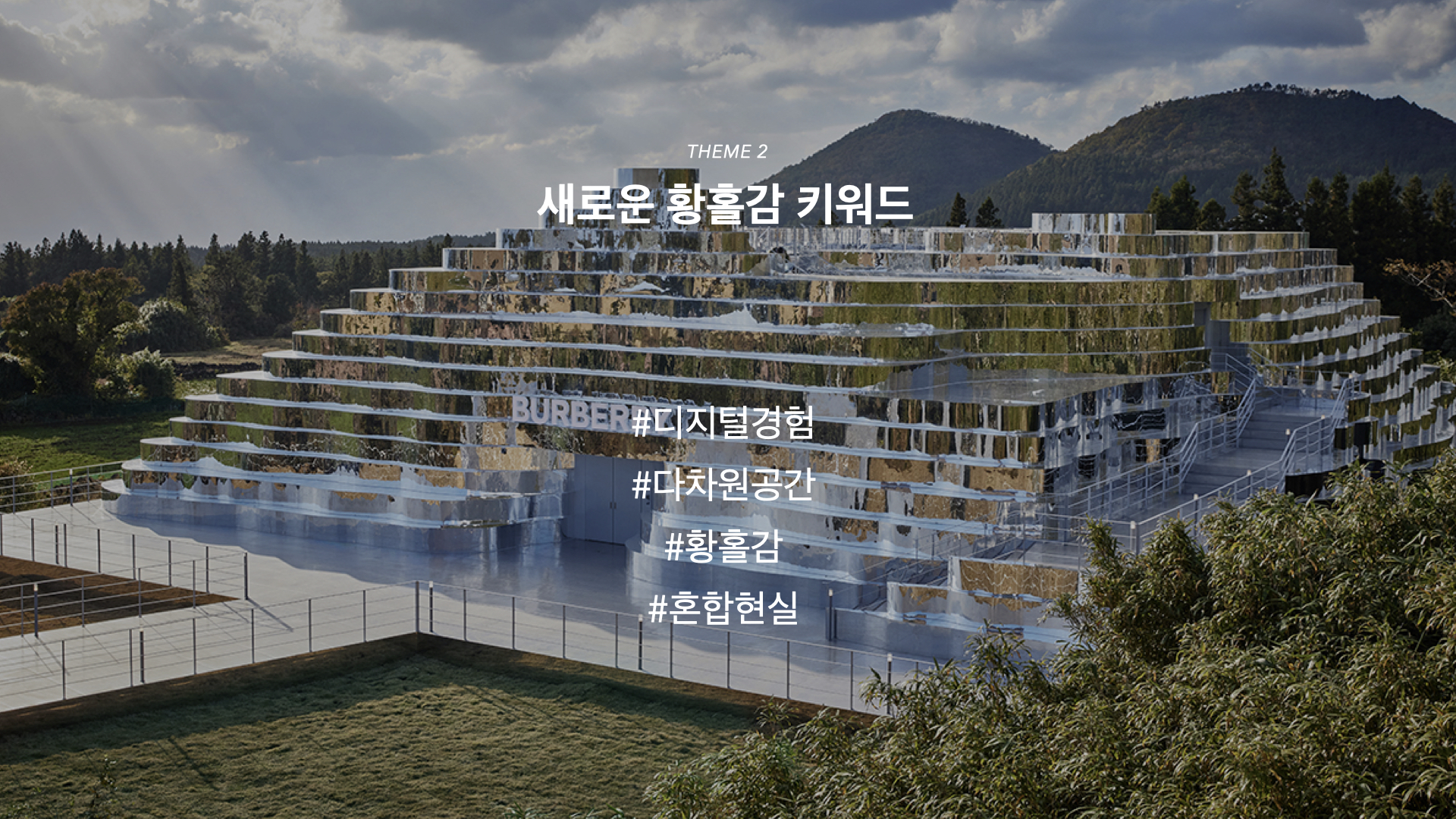 현실의 제약에서 벗어나 자유로운 공간에서 각자의 카타르시스를 느끼게 된 사람들이 디지털 세계 속 황홀감 속에서 살아가고 있고, 새로운 형태의 도피성이 하나의 유희적인 요소로 자리잡게 되었다. 따라서 테마 2 'Neo Psychedelia(새로운 황홀감)'에 주목할 키워드는 #디지털경험#다차원공간#황홀감#혼합현실로 정리할 수 있다. 그리고 본 포스트에서는 앞서 이아기한 흐름을 토대로 다음과 같이 컬러와 소재에 대해 이야기를 하고자 한다.