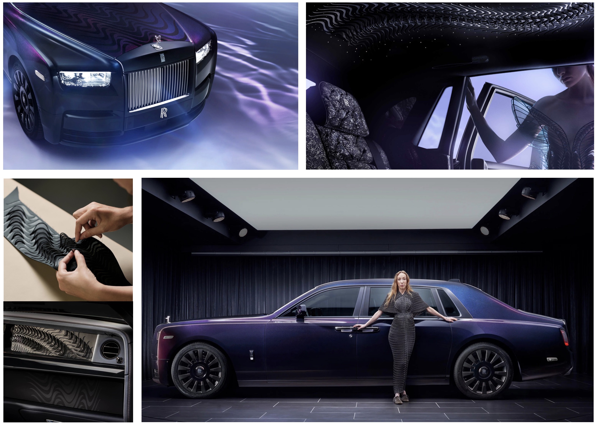 또한 롤스로이스는 이번 3월에 네덜란드 패션 디자이너 Iris Van Herpen와 협업한 비스포크 모델 '팬텀 신토피아'를 공개했다. '팬텀 신토피아'라는 이름은 Iris Van Herpen의 2018 시그니처 컬렉션에서 이름을 따왔으며 생체모방학 (Biomimetics), 즉 생물학적 영감을 받은 디자인을 바탕으로 디자인되었다.