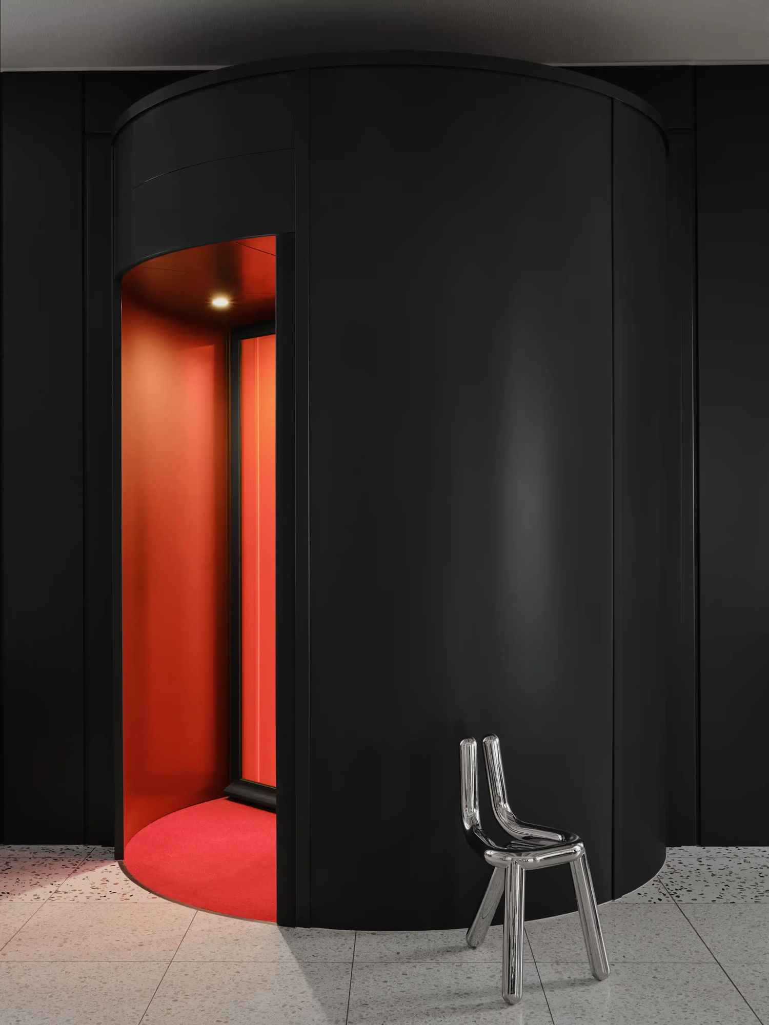 외관은 강렬한 코르텐 스틸로 마감되어 도시적인 질감을 강조하고, 내부는 대담한 컬러 팔레트와 풍부한 텍스처가 조화를 이루며 시각적 에너지를 극대한다. 로비와 공용 공간에는 찰스 샌포드, 볼커 하우그, 조던 플레밍 등 멜버른 로컬 디자이너들의 원색 가구와 조명 작품이 배치되어 컬러 자체가 주인공이 되는 공간을 연출한 것이 특징.