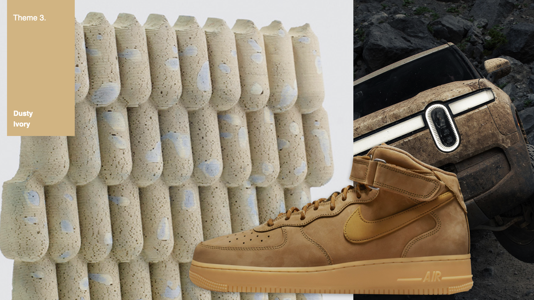 이처럼 주체성이 강조되고 있는 사회 분위기 속에서, 기술의 발달과 모빌리티의 주도성은 더 많은 가치를 생성하고 라이프 스타일 속 주도자의 역할을 수행하고 있다. 이러한 흐름을 바탕으로, 3번째 테마에서는 주체적인 나를 드러내고 거울처럼 흘러가는 현대적 재해석을 통한, 다음과 같은 5가지 컬러와 소재로 트렌드를 제안한다.