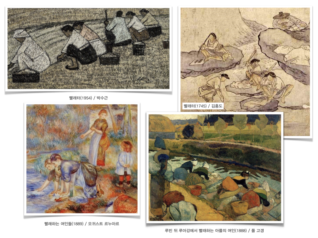 명화의 소재로 흔히 접하던 ‘빨래’는 의복을 입기 시작할 무렵부터 여인들 전유의 상징이었다. 빨래터는 수다의 장이자 한(恨)을 씻어내는 터전, 모든 소식통들이 오고 가는 뉴스의 중심지이기도 하였다. 그만큼 빨래라는 행위와 관습은 하나의 문화로 잡리잡혀 왔다. 꿈에서도 빨래하는 꿈은 길몽으로, 가지고 있던 근심 걱정을 해소하는 것을 의미할 정도로 우리에게 세탁의 정의는 여러 가지 면에서 해소의 수단임을 가리키기도 한다.