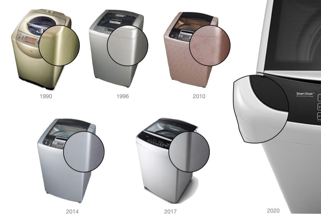 국민소득 1만 달러 시대로 세계 경제 강국 초읽기에 돌입하게 되자 백색 가전 트렌드도 점차 서구화의 영향을 받으며 디자인에도 변화의 바람이 불기 시작했다. 특히 세탁기의 대표주자이던 통돌이를 예로, 형태에서 비롯된 디자인의 변화도 과거 넓고 각진 박스 형태보다 길어진 몸체 높이에 에지(Edge) 부문을 곡선 형태로 하여 부드러운 세련미를 보여주었다. 또한 기존 솔리드 색조 중심에서 골드, 로즈골드, 실버 등 펄감을 첨가한 컬러 라인업을 구성, 제품이 가진 기능적인 면과 더불어 시각적으로 고급스러움과 심미적인 요소가 적극적으로 반영되기 시작하였다.