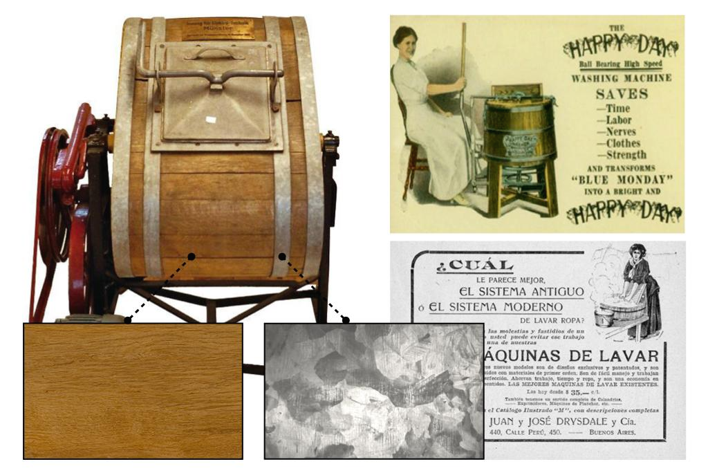 긴 역사를 뒤로하고 기술의 발전을 거듭하던 20세기 초반 무렵에는 과거에 한을 씻어내던 빨래 터가 하나의 사물로 전환된 시기였다. ‘세탁기’의 탄생은 여성들의 삶을 송두리째 바꿔 놓는 혁신적인 사건이 되었다. 특히 현(現) 세탁기의 전신이라 할 수 있는 제품이 독일 밀레(Miele)에서 탄생하면서 세탁 방법의 패러다임이 변화하기 시작했다. (최초의 '세탁기'란 정의는 17세기 영국에서 특허 등록되었다.) 이때의 세탁기는 리얼 우드를 조립하여 제작한 것으로 내구성이 뛰어나지는 않았을 것으로 보인다. 컬러도 실제 우드 소재라는 점에서 밝은 톤부터 어두운 톤까지 옐로, 카키, 브라운톤이 주류였다. 하지만 모두가 예상한 대로 진화를 거치기 전(前) 세대는 디자인보다 기능이 우선이었다.