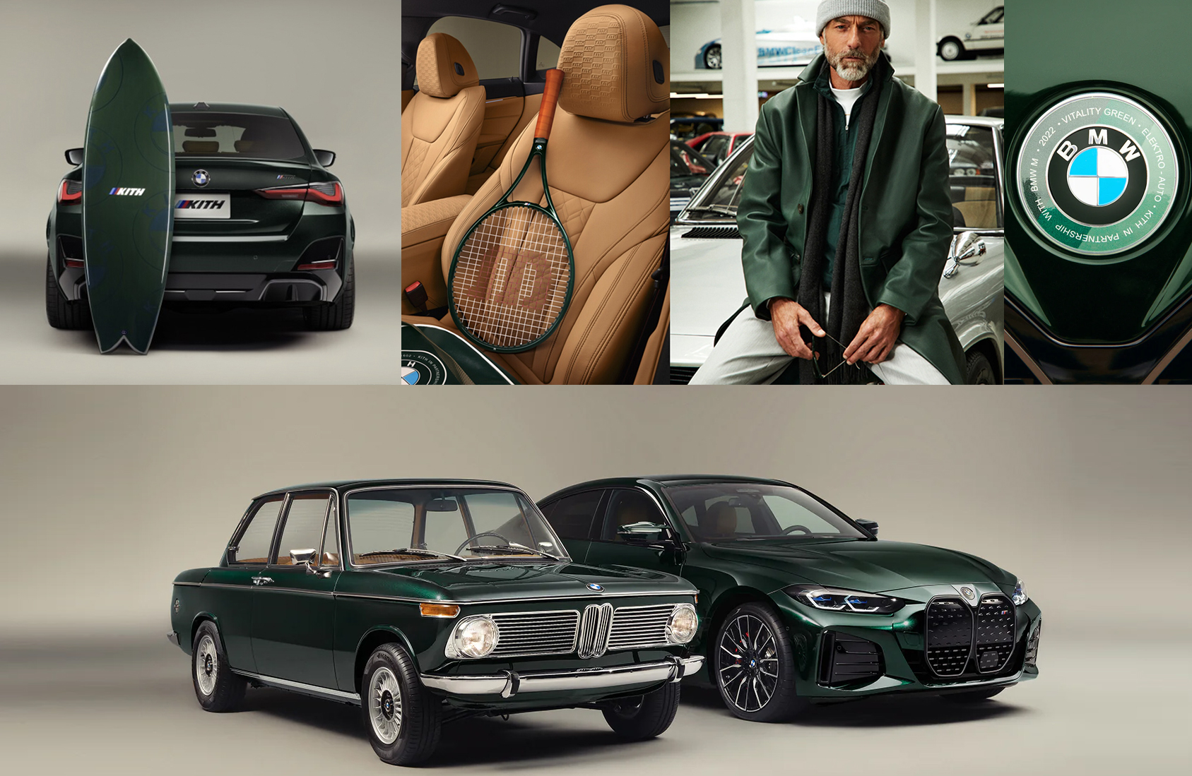 BMW는Kith와다시 한번 콜라보를 선보였다. ‘2022 BMW i4 M50 & 1972 BMW 1602 Elcktro’ 이 두 모델은 BMW 역사상 첫 전기차와 BMW 디비전 ‘M’의 최초 전기 모델, 즉 동시에 ‘최초’인 모델들이다. 여기서 우리가 주목해야 될 점은 바로 이 콜라보를 통해 BMW에서 처음으로 파트너인 브랜드의 이름을 따서 컬러를 만들었다는 것이다. 이름하여 바로 ‘Kith Vitality Green’. 다크하고 럭셔리한, 풍부한 느낌의 이 컬러는 이 콜라보레이션에만 한정된 컬러로써, 외장 컬러 외에도 후드에 있는 엠블럼에 동일한 색상의 링이추가됨으로써특별함을 더 해 준다.