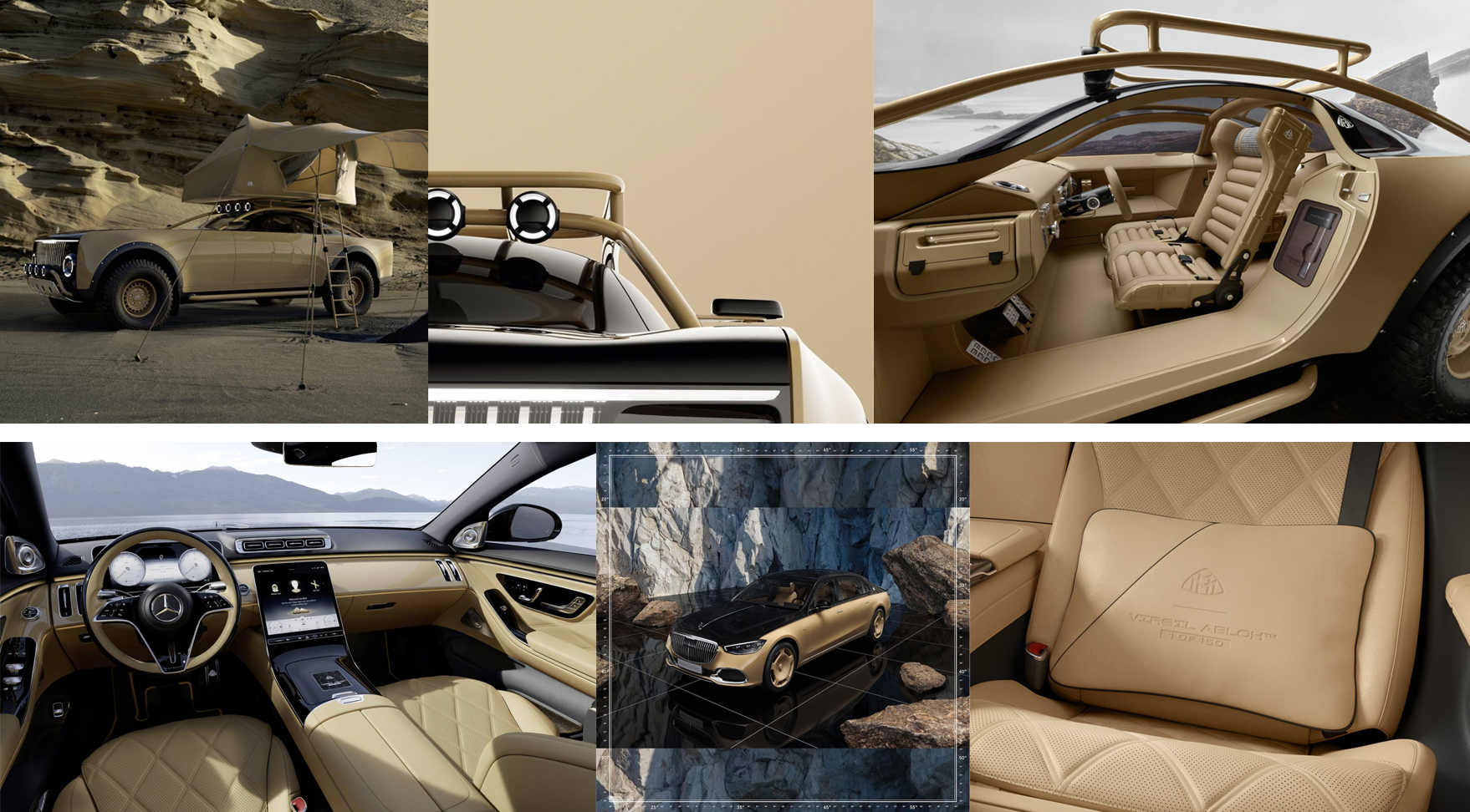 벤츠의 프로젝트 마이바흐는 사막의 모래에서 영감을 받은듯한 부드럽고 유니크한 샌드 컬러를 선보였다. 프로젝트 마이바흐는 아웃도어 어드벤처 느낌이 인테리어까지 연장선으로 적용되었고, S680 모델은 외장은 샌드 컬러와 옵시디언 블랙의 투톤 조합과 함께 인테리어 또한 럭셔리한 무드에 집중했다.