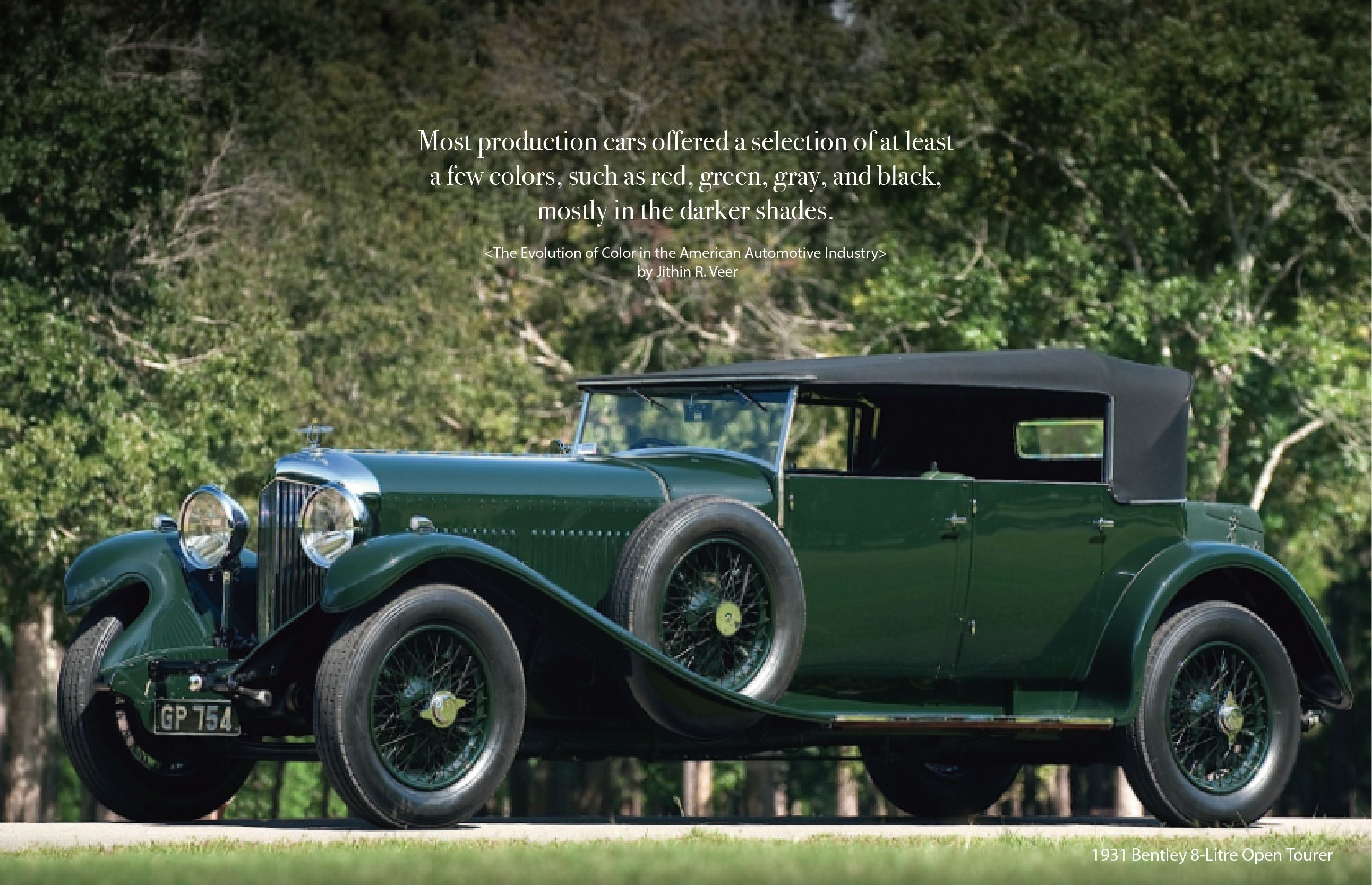 당시에는 페인터가 직접 브러쉬로 여러번 덧칠하여 페인팅하였고, 때문에 정확하고 균일한 컬러를 구현하기가 어려웠다. 블랙 페인트가 건조되는데 필요한 시간은 4~8주. 다른 컬러에 비하면 상대적으로 빠른 편이었다. 초기 증기 기관차나 증기선이 모두 블랙컬러였던 것을 떠올려본다면, 당시의 운송수단이 거의 동일한 컬러로 생산되고 있었음을 알 수 있다.