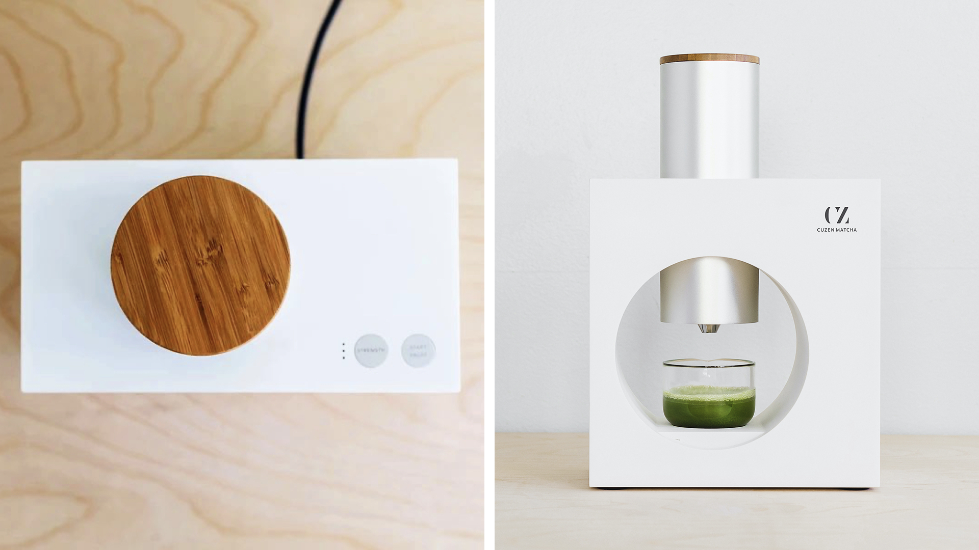 신선한 말차를 만들어 내는 기계인 쿠젠 맛차(Cuzen Matcha)는 큰 면적의 바디가 메탈과 플라스틱으로 구성되어 있지만, 손이 가장 많이 닫는 커버 부분을 나뭇결이 살아있는 원목으로 디자인하여 말차의 신선한 이미지와 사용자를 위한 따뜻함 감성을 동시에 잡아냈다.