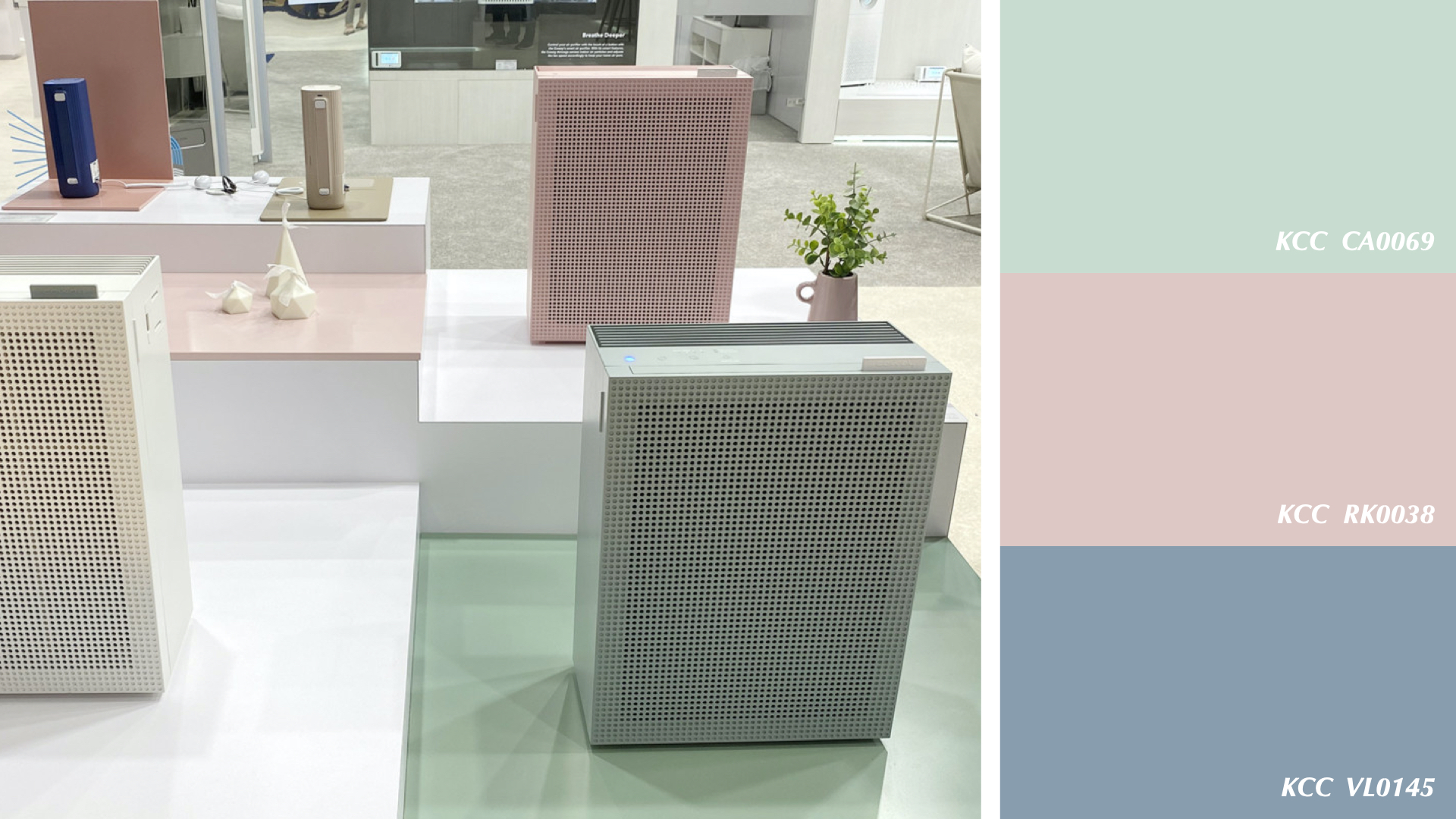 코웨이(Coway)의 부스는 부드러운 파스텔 톤으로 물든 공기청정기 에어메가(Airmega) 시리즈를 선보여 전시 관람객의 눈길을 사로잡았다. (혁신상을 수상한 제품은 아니지만) 마치 제품 그 자체를 통째로 페인트에 풍덩 빠뜨린 느낌을 주는 디자인이다. 제품에 적용된 파스텔 색감이 전체적인 제품의 라인을 깔끔하게 돋보이게 만들고 실내공간에 설치했을 때에 부드럽게 녹아들 수 있도록 한다.