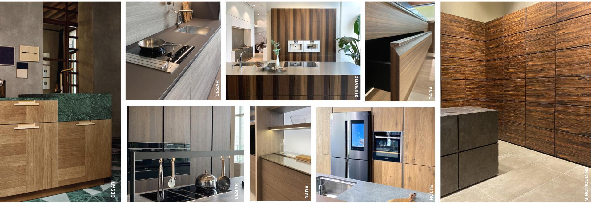 고급 수종을 사용하여 프리미엄 주방가구 라인을 구축한 ‘MINOTICUCINE’의 제품을 보며