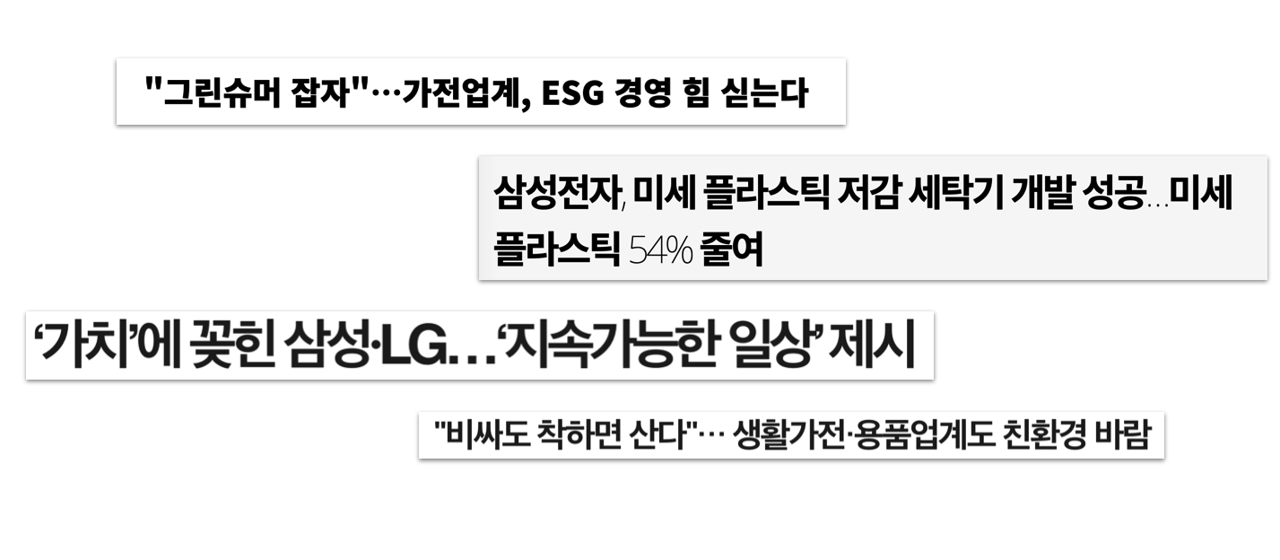 현 사회는 윤리적이고 친환경적인 제품들이 '선택'받는 시대가 되었다. 소비자들은 일상에서 지속적으로 발현되는 가치에 투자를 하고, 즉각적인 만족감보다는 지속적으로 나에게 만족도를 줄 수 있는 제품을 구입하기 시작했다. 이러한 소비자 라이프 스타일에 따라, 다양한 분야의 많은 기업들이 ESG 경영 차원에서 제품을 생산하고 있는데, 이번 포스트에서는 지속 가능한 제품을 중심으로 '착한 가전'에 대한 이야기를 하고자 한다.