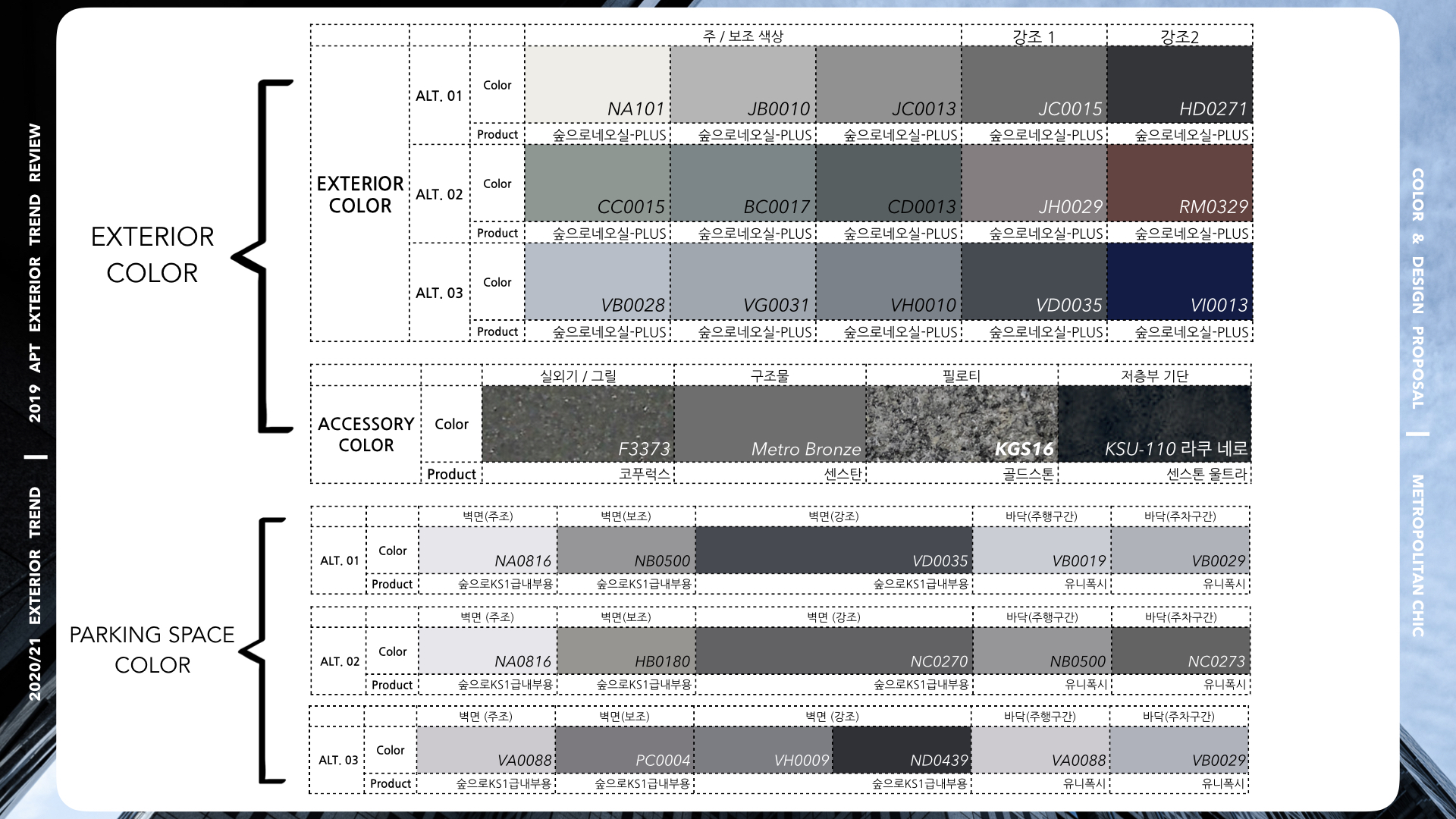| [ACT] 19/20 익스테리어 트렌드_컬러 & 자재 패키지 제안 #03. (2) | 2020.09.17 |
