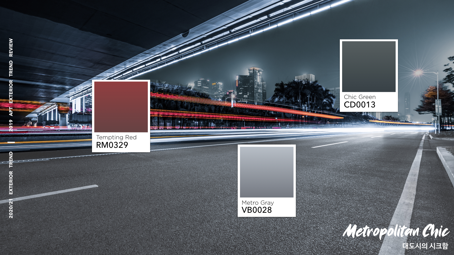 두 번째 테마 Metropolitan Chic는 우리가 매일 같이 마주하고 도심 속에서 쉽게 발견할 수 있는 도시적이고 시크한 배색이 기본이 된다.