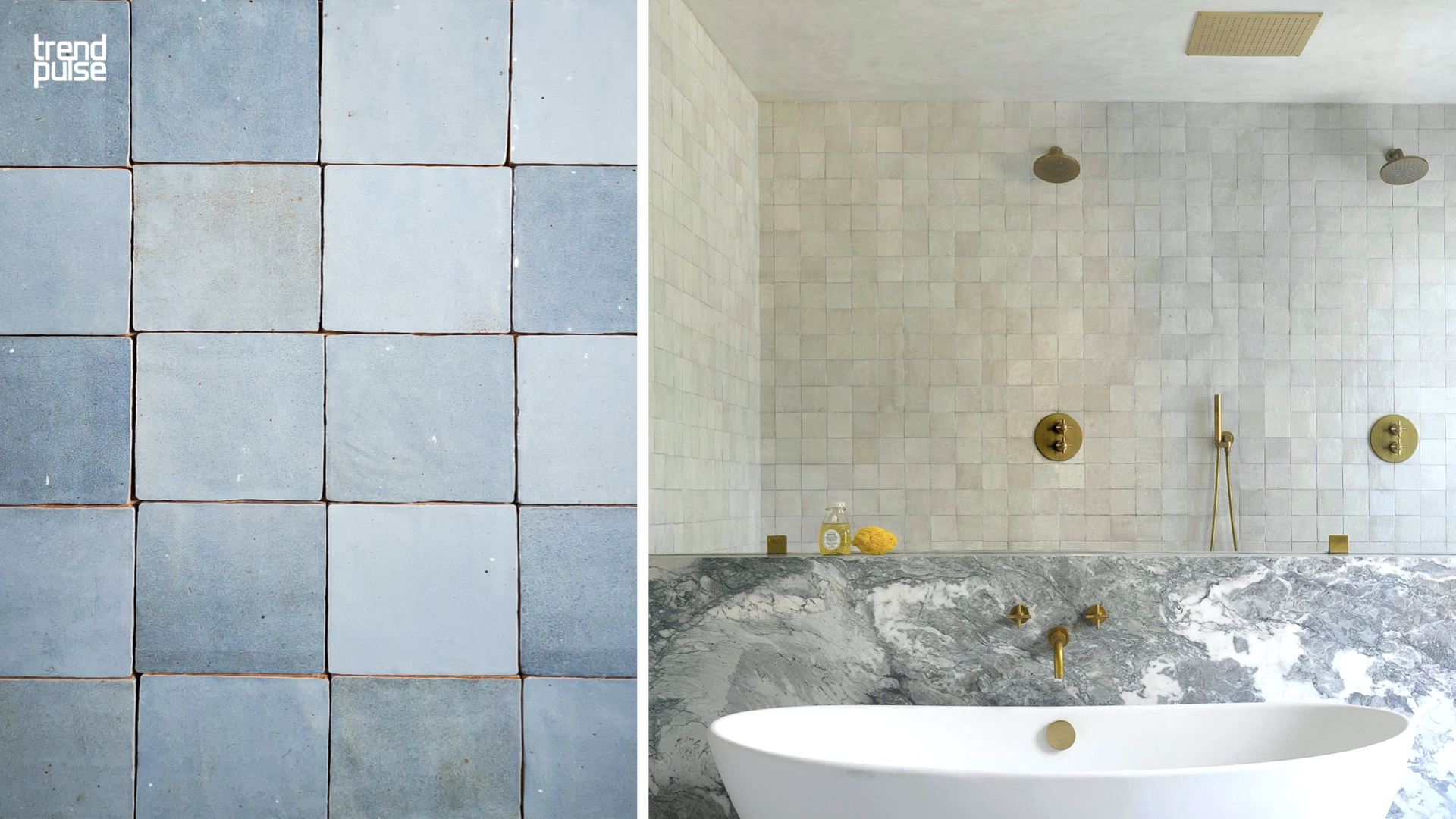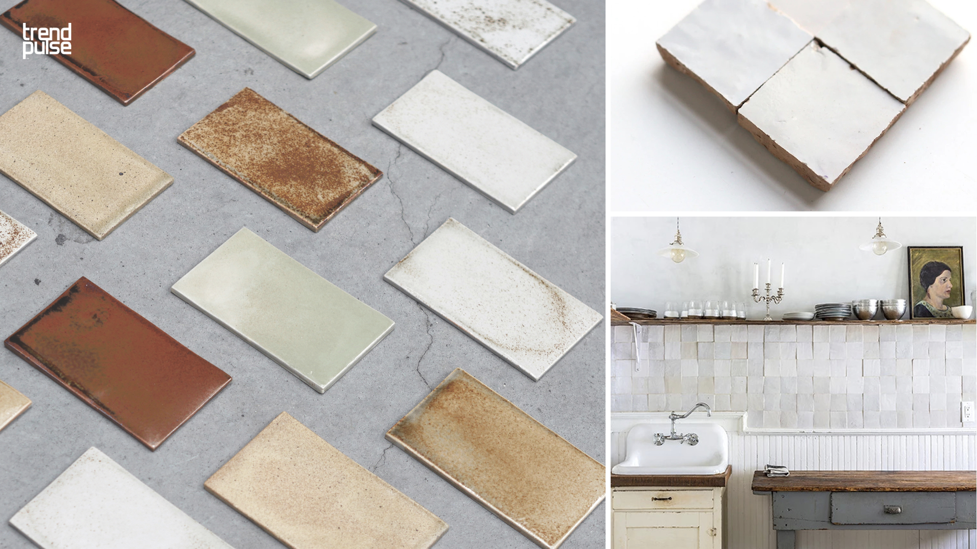 시대의 조율에서는 우리에게 모로칸 타일로도 알려진 젤리지 타일 (Zellige Tiles) 또한 주목해 볼만하다. 테라코타에 패턴을 그려 굽고 반짝거리는 유약을 바르는 젤리지 타일은, 보통 화려한 모로칸 패턴을 가지고 있지만 이번 시즌에는 패턴은 빠진 솔리드 컬러가 트렌드이다. 손으로 만들어 삐뚤빼뚤 제각각인 ’불완전함’이 아름다움으로 자리 잡는다.