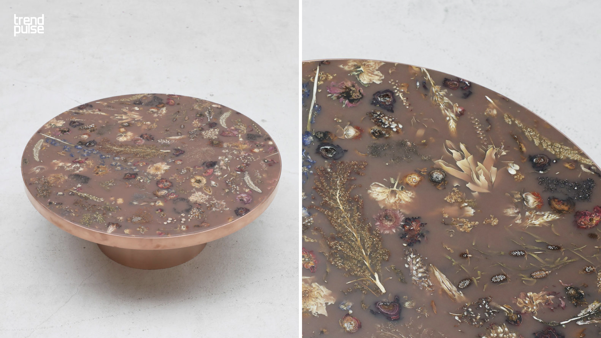 자연을 그대로 레진(resin)에 굳혀 만든 마감재 또한 요즘 큰 주목을 받고 있는데, 자연물을 바라볼 때 느껴지는 순수한 즐거움을 보다 직관적으로 공간 속에서 경험할 수 있게 한다.
