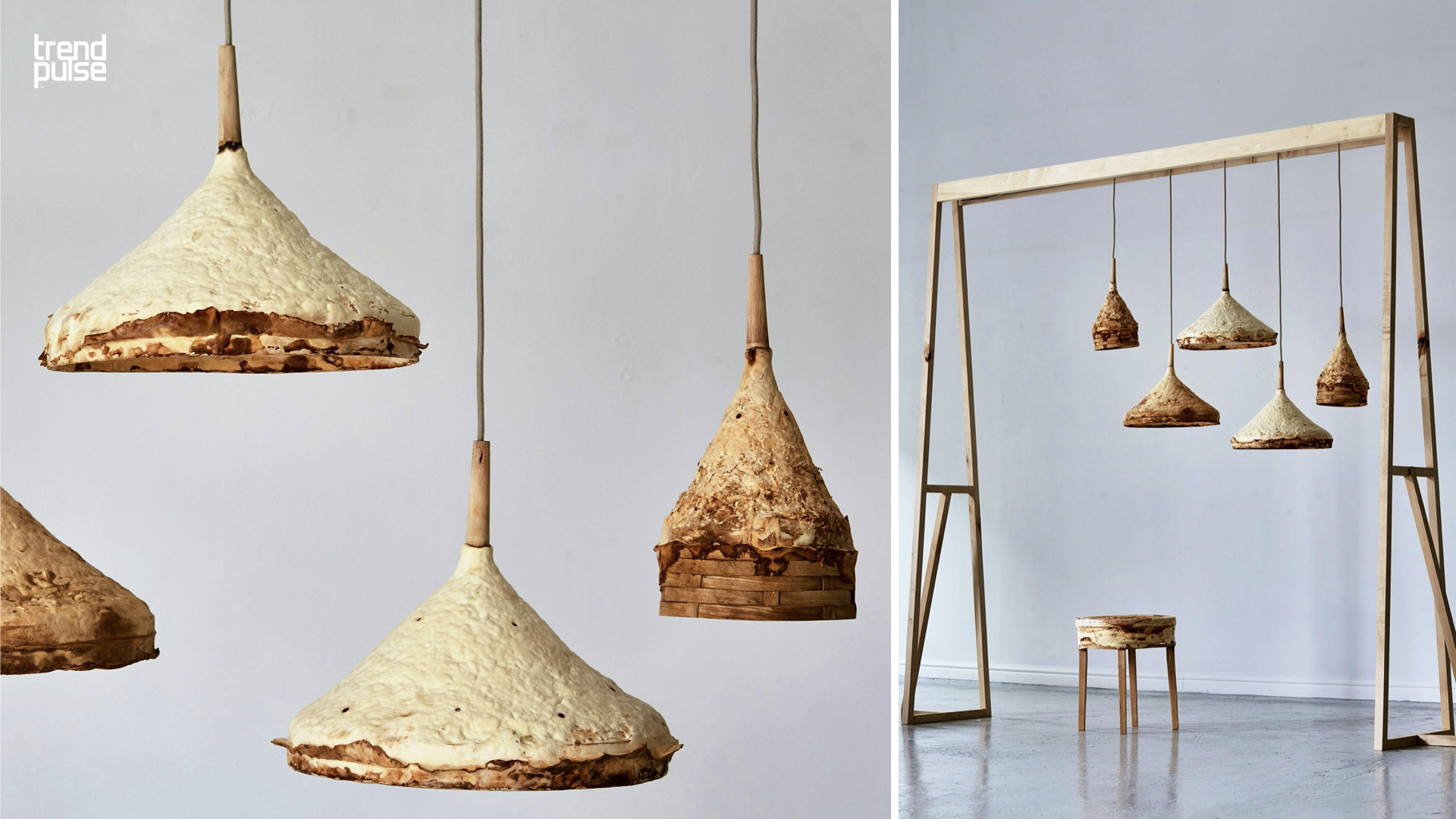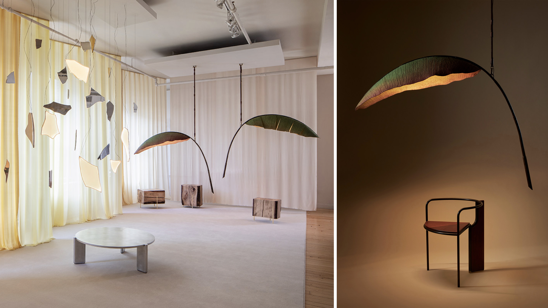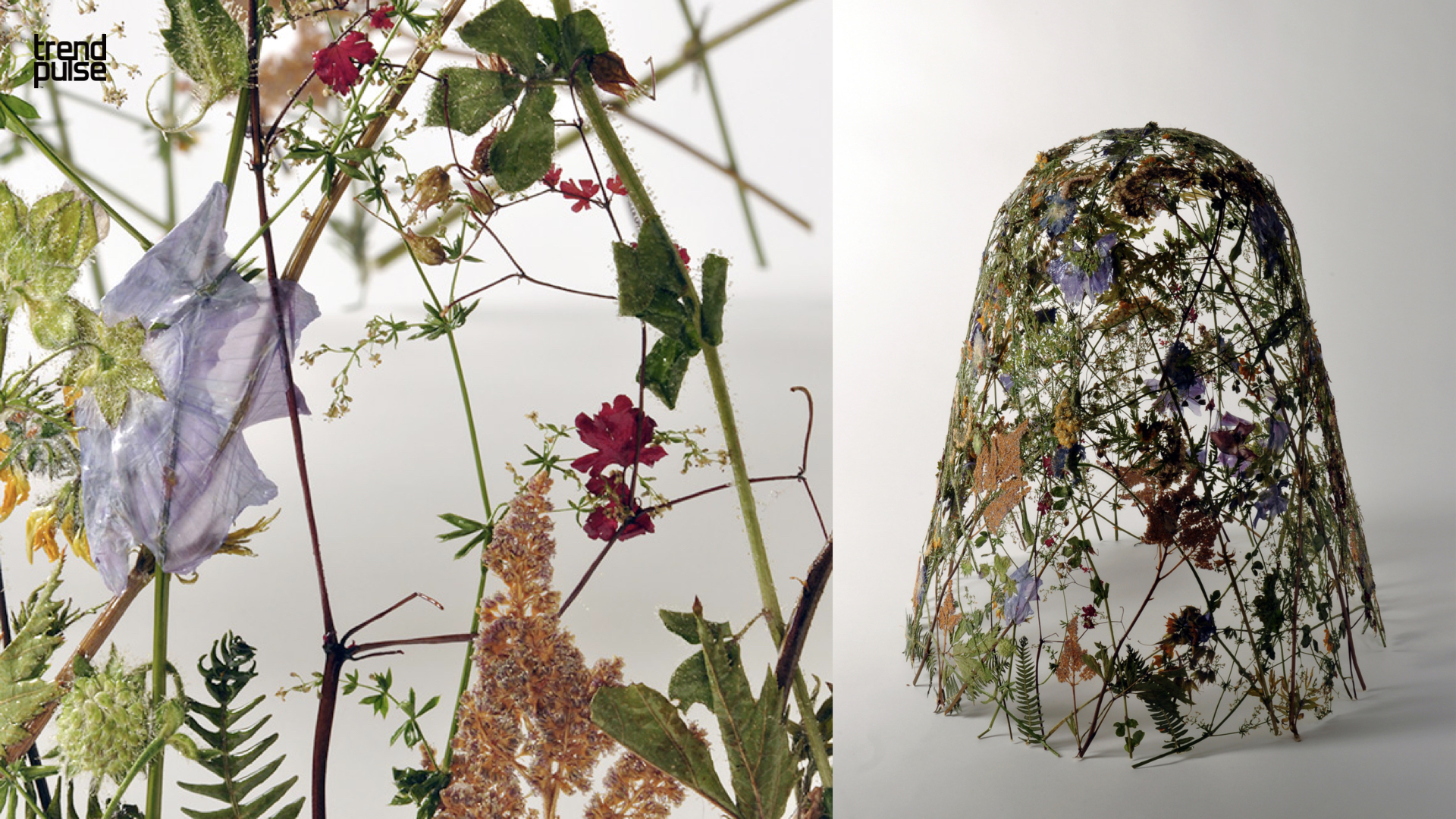 이번 시즌에는, 자연의 형태를 대놓고 ‘모사’하는 디자인, 혹은 실제 적배추 잎으로 만든 조명과 같이 (상단 이미지), 자연 소재 그 자체를 디자인 형태로 활용하여 디자인 한 제품이 눈길을 끈다.