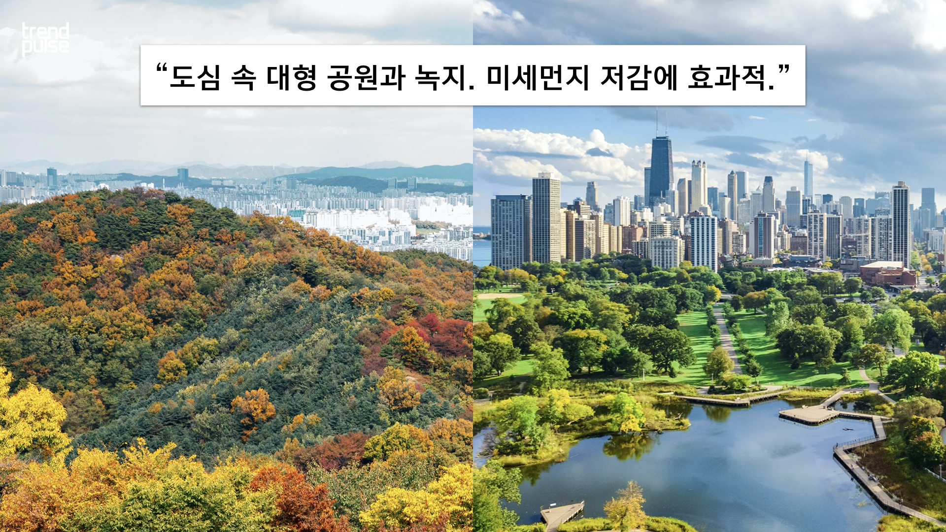 이와 더불어, 최근 도심 속 대형 공원이나 산의 녹지가 미세먼지를 저감시킨다는 연구 결과들이 연이어 발표되면서 숲이나 공원이 주거 환경 가까이 위치하는 ‘숲세권’과 ‘공세권’의 선호도가 급격하게 높아졌고, 분양 시 프리미엄 옵션으로 여겨지고 있다. 집을 구할 때 확인하는 새로운 조건이 생긴 것이다.