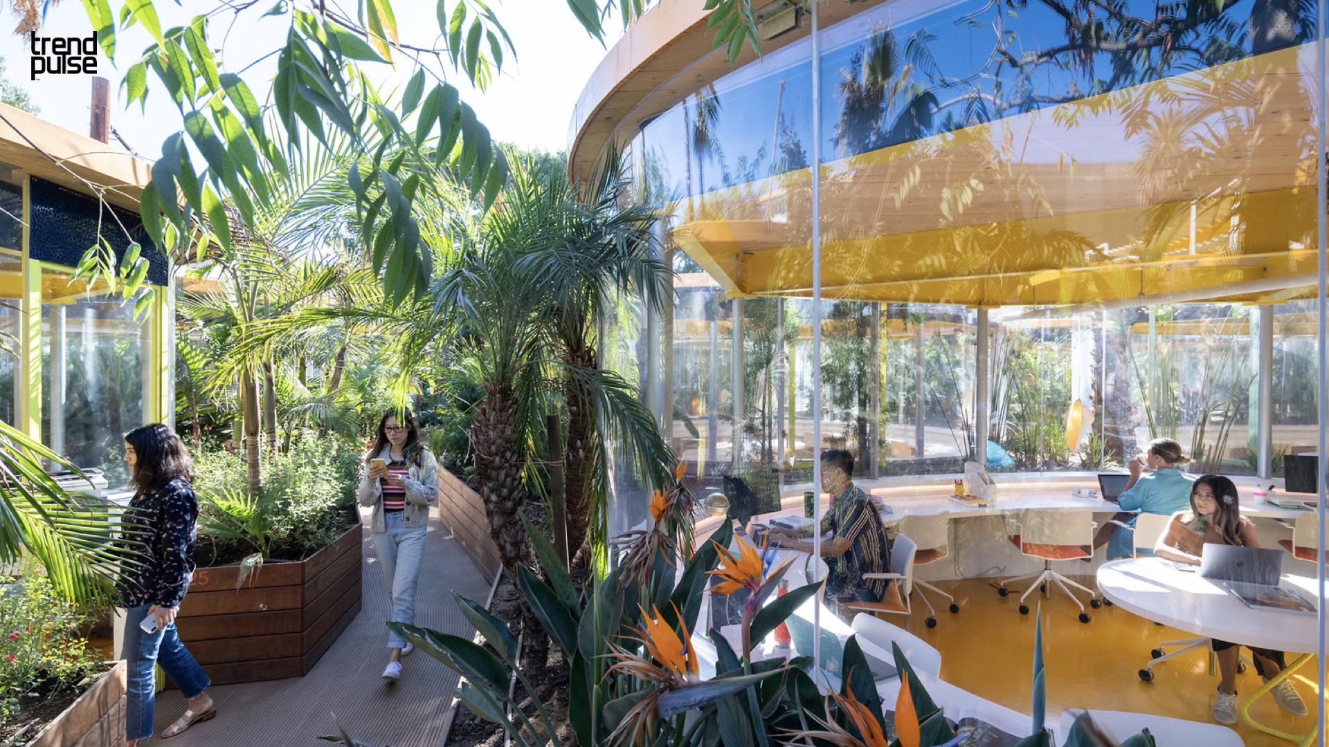 숲 속 사이사이 미팅 공간과 통로가 있어 일을 하면서도 자연 속을 산책하는 것 같은 환경이다. 오피스 내에서 일할 때도 자연을 바라보게 설게 되어 있어 근무 스트레스를 완화시키고 업무 효율을 높이는 결과를 기대하게 한다.