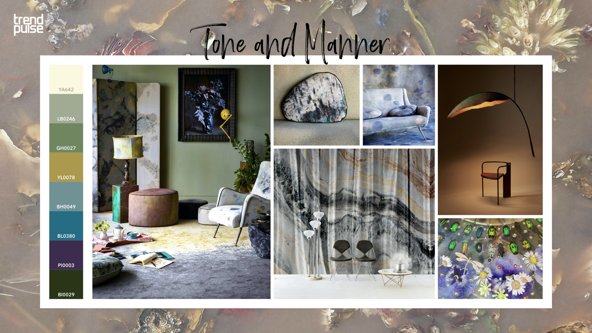 ‘환경의 조율’이 완성하는 톤앤매너(tone and manner)이다. 전체적으로 딥하고 풍부한 컬러와, 번지고 확장되는 듯한 뉘앙스의 패턴이 기존과는 다른 자연을 은유적으로 표현해 내며, 바이오필릭 인테리어를 완성한다.