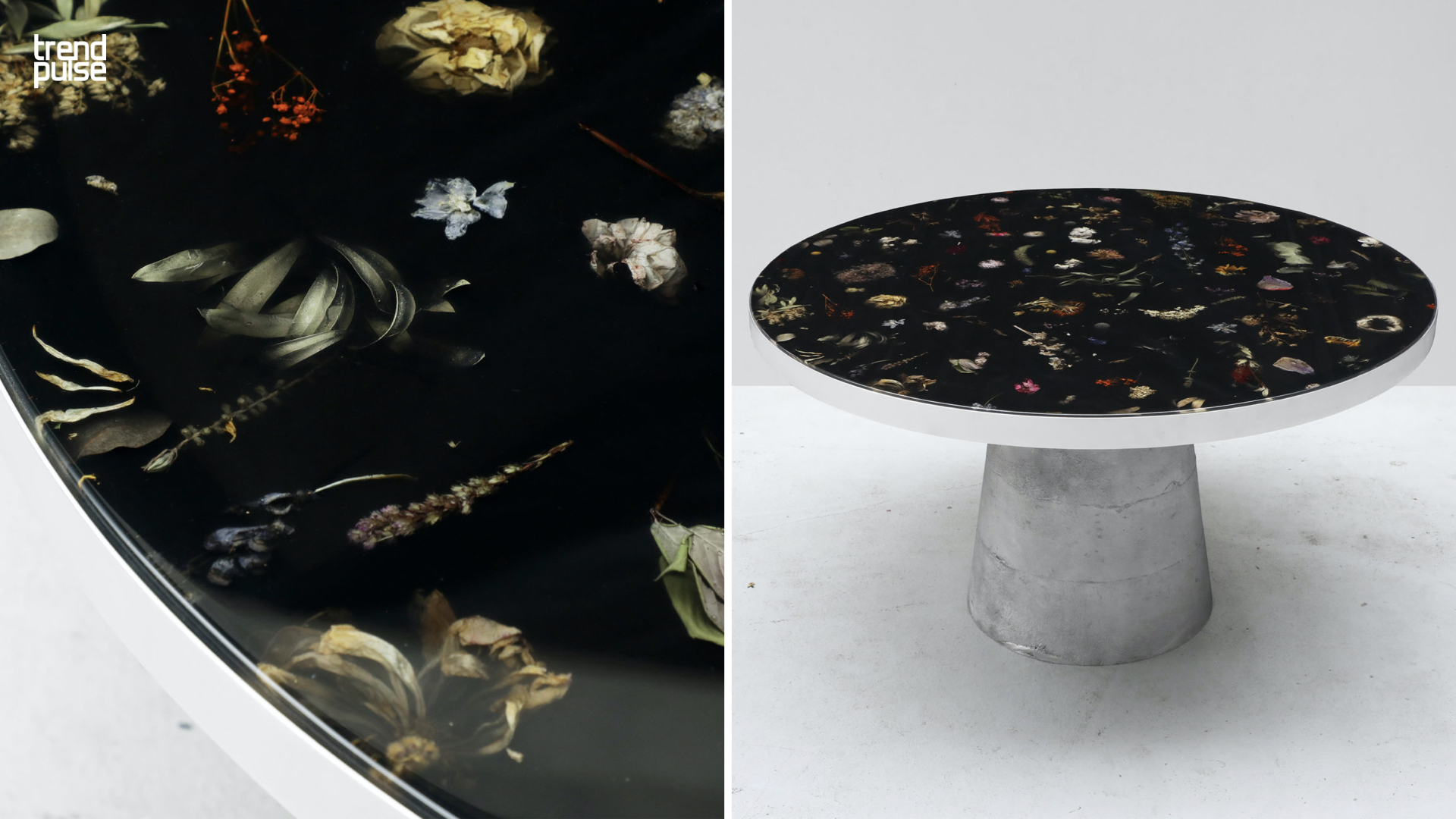 앞서 마감재 제안에서 언급했던, 생화나 드라이플라워를 그대로 합성수지에 굳혀 자연물의 순간을 영구적으로 포착한 소재는 아름다운 가구 작품으로 탄생된다. 이러한 마감재와 가구, 소품을 활용하면 자연을 끊임없이 갈망하는 이들에게 생기 있는 공간을 선사할 수 있다.