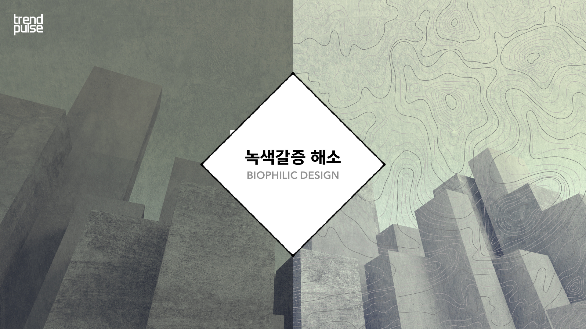 대기 오염 등의 문제로 실내에 머무는 시간이 늘어나면서 우리 내면에 존재하는 자연에 대한 갈망은 더욱 더 커지고 있다. 거주지 주변에 산이나 공원이 있길 바라는 이들이 늘어나고 있으며 공간 곳곳에 크고 작은 식물들이 자리 잡고 있다. 녹색 갈증을 해소하기 위한 우리의 본능적 움직임은 우리를 둘러싸고 있는 내・외부 환경을 조율하고 공간 속에서 또 다른 생명감을 만들어낸다.