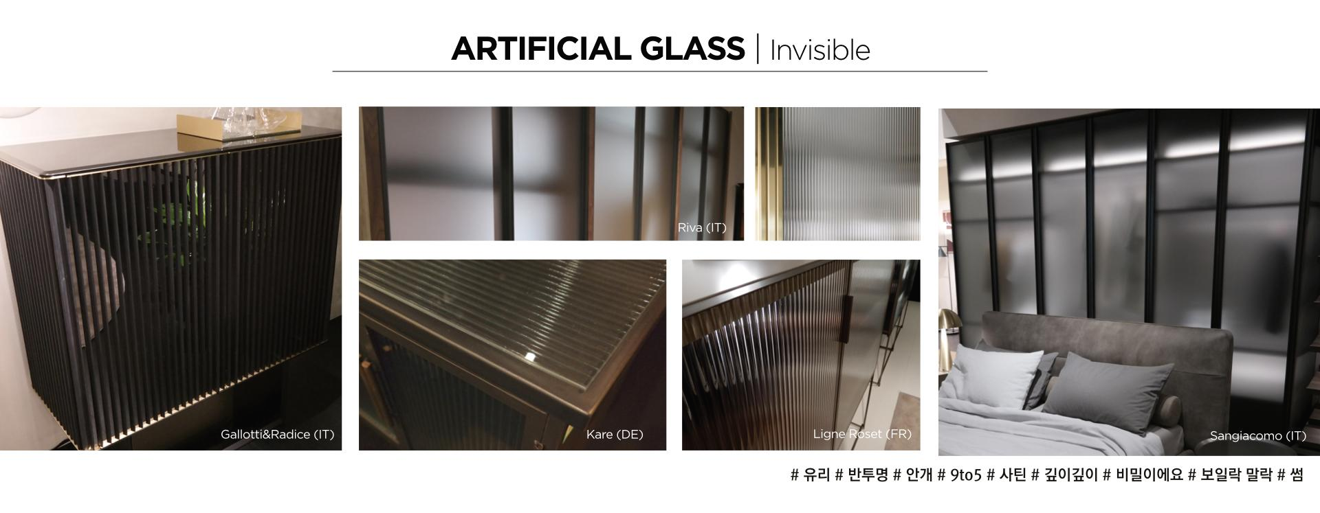 여기에 유리를 활용하여 시각적인 깊이감까지 부여하는 제품이 지속적으로 등장하는 것은 유리 소재가 이제는 인테리어 디자인에 주요 소재가 되고 있다는 것을 반증하고 있는 것이다.