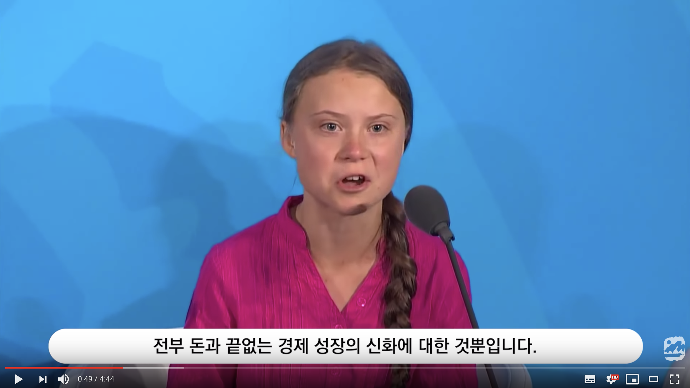 작년 9월 UN기후정상회담에서 가감없이 국가 정상들을 질타했다.