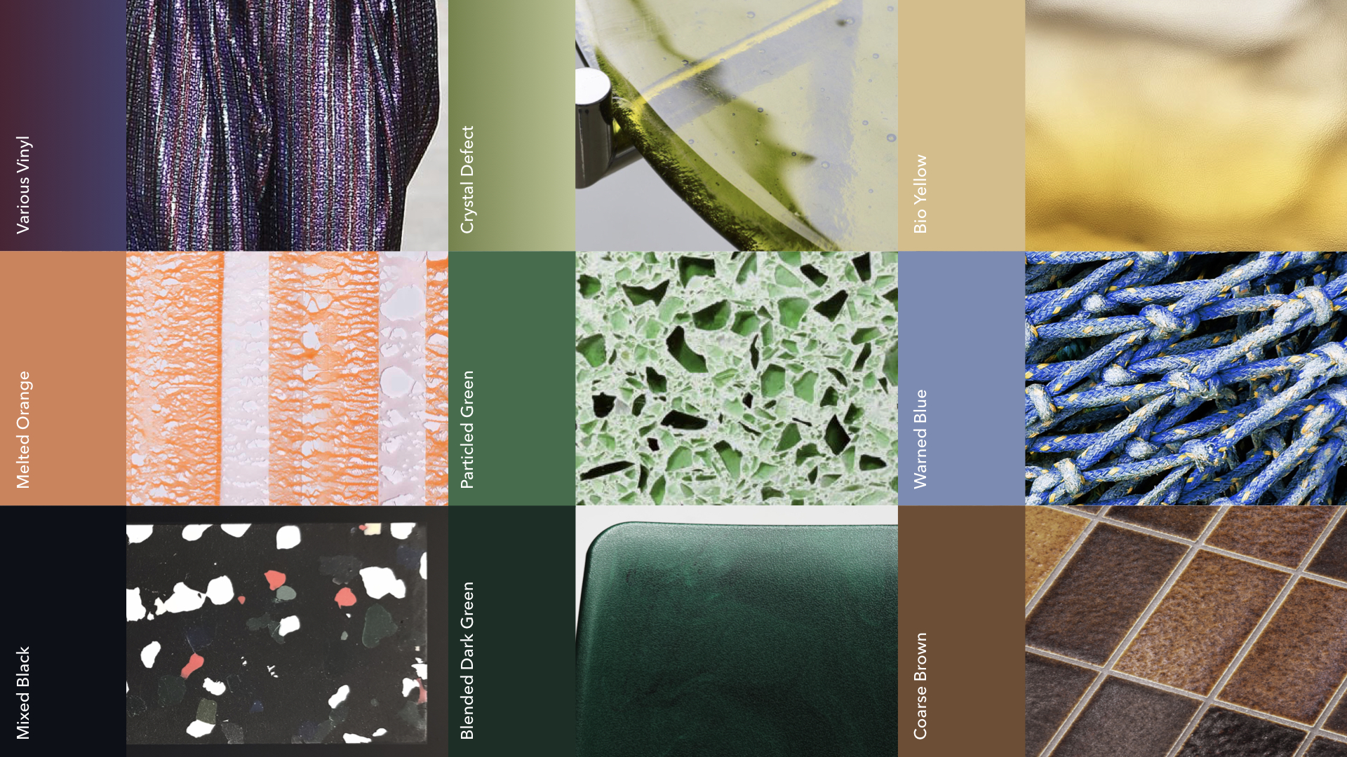 바이오 소재와 폐기물을 자원으로 순환시키는 전략에서 추출한 컬러로 제안 컬러를 구성했다.