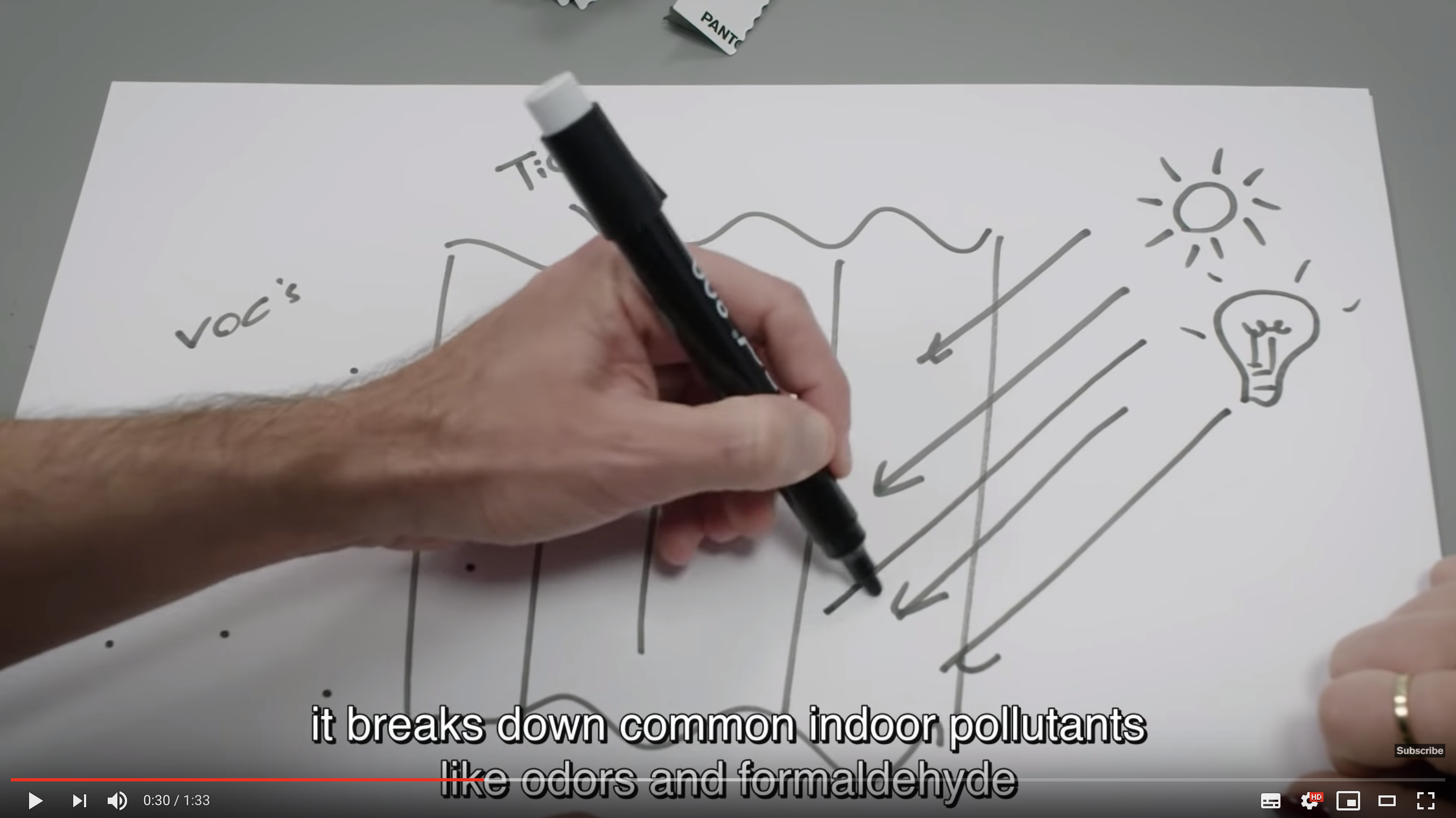 빛을 받았을 때, 미세먼지, 포름알데히드 등을 분해하여 공기를 정화한다.
