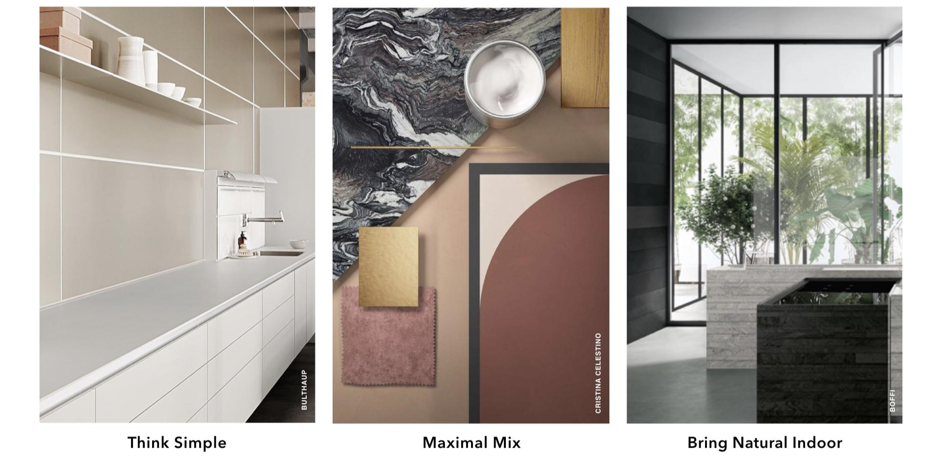 Think Simple, Maximal Mix, Bring natural indoor 3가지로 요약할 수 있다.