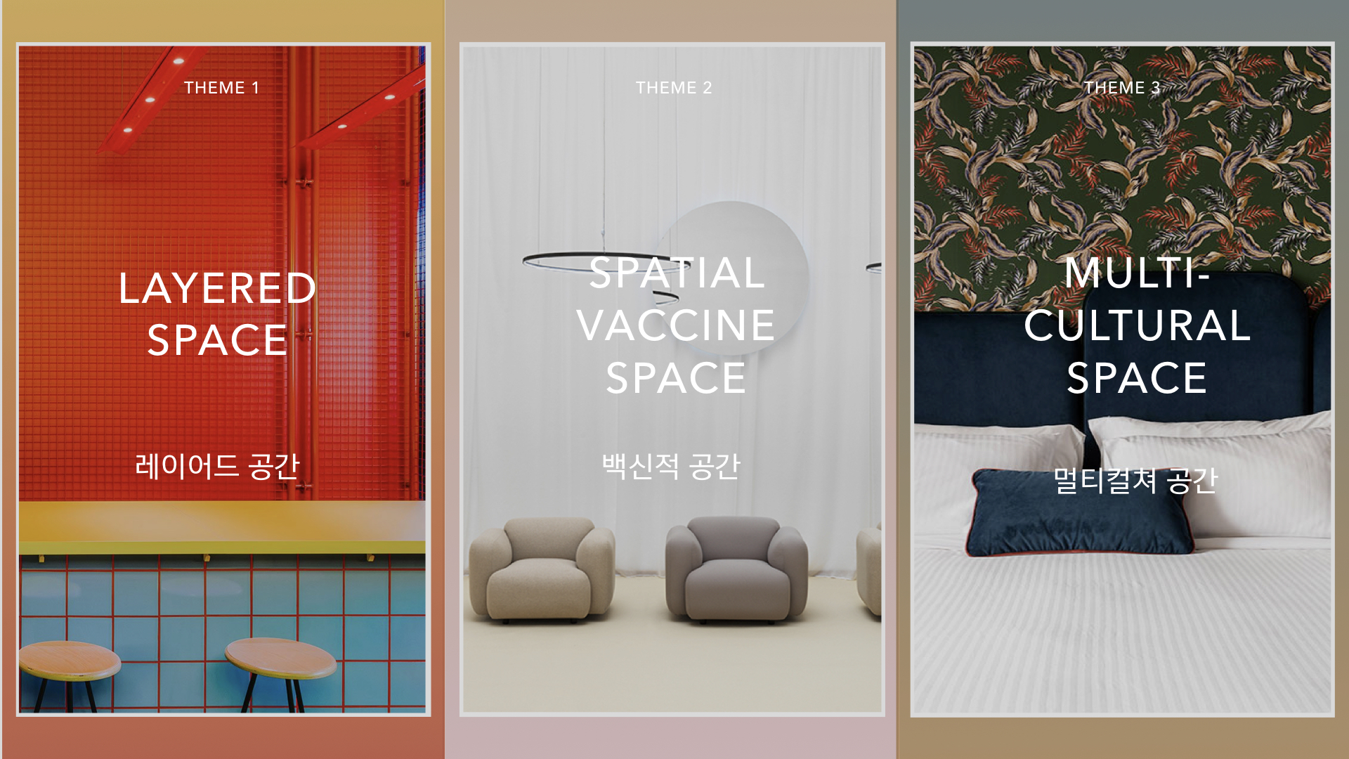 첫번째 테마, 레이어드 공간의 전체적인 톤앤매너는 채도높은 컬러를 바탕으로