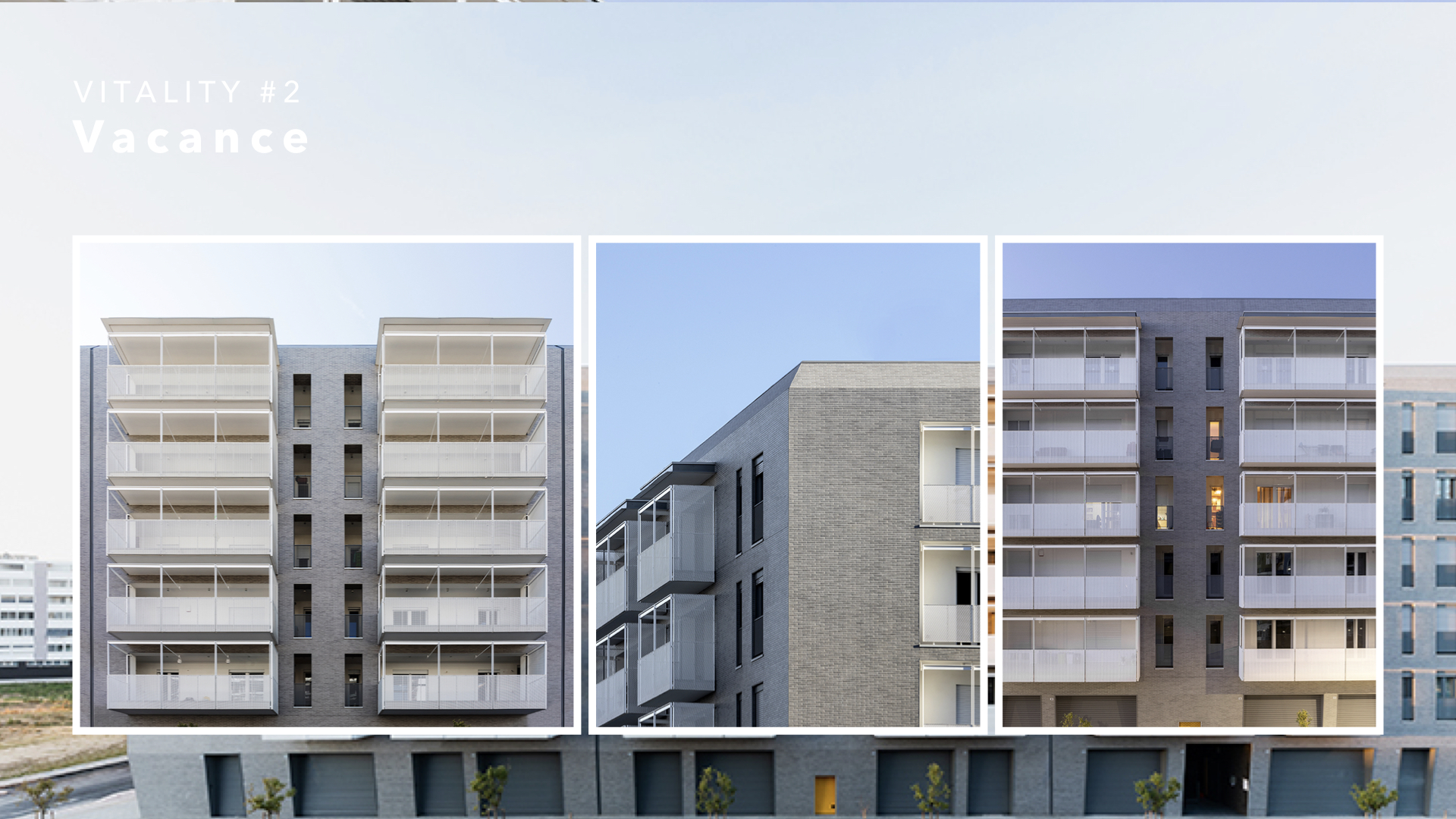 올해 이탈리아에 지어진 루버스타일의 직선과 화이트 컬러로 구획한 깔끔한 발코니 공간