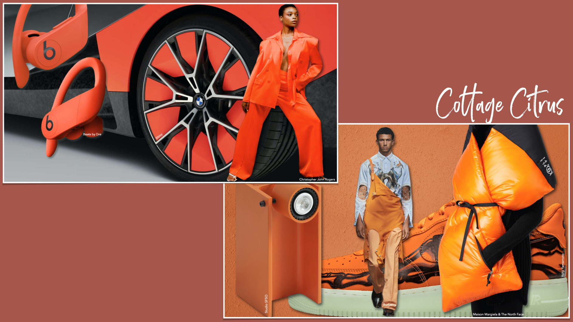 현대적 실루엣에 빈티지한 오렌지, 그린, 옐로 등의 컬러와