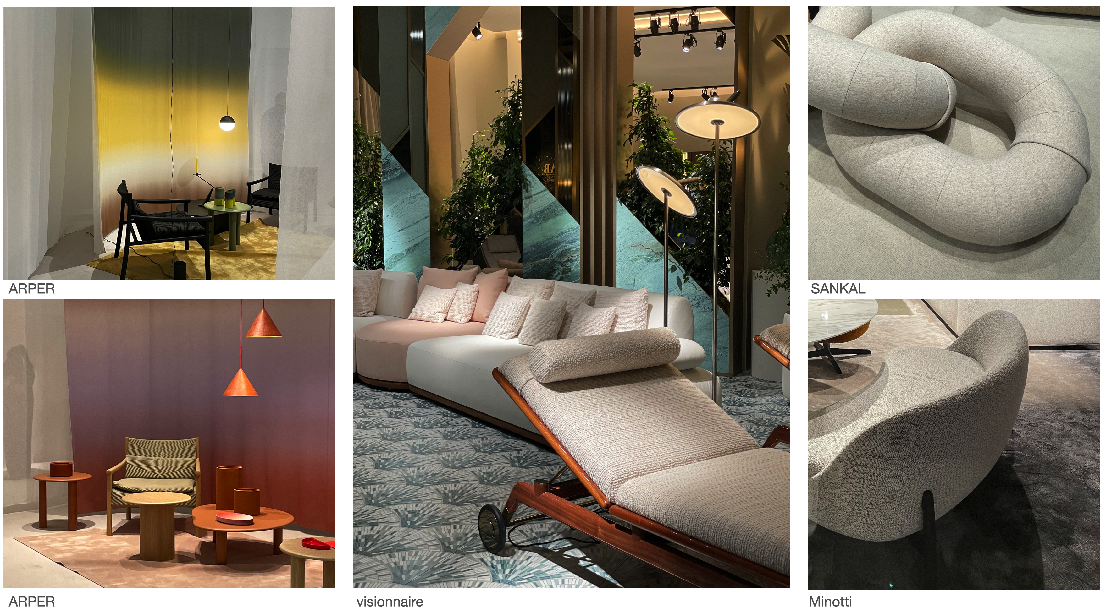 팬데믹 이후 인테리어 가구는 지속적으로 따뜻한 느낌의 패브릭을 활용한 유기적인 형태의 쇼파와 우드를 활용한 테이블 등 휴먼 터치에 근거한 디자인들이 보여지고 있다. 그리고 올해에도 이러한 방향성은 계속될 것으로 보여지며, 독특한 유선형 형태의 디자인으로 해석되기도 한다. 또한 오브제들 간의 유기적 연결은 컬러와 소재 면에서도 눈여겨볼 만 한다. 이탈리아 가구 브랜드 Arper는 투명함과 색채가 조화를 이루는 구름처럼 섬세한 공간으로 올해 전시를 구성했다. 컬러와 디자인 심리학에 많은 관심을 가지고 디자인을 전개하는 브랜드 철학에 걸맞게 그라데이션을 활용해 공간과 제품을 시각화 하였고, 유기적인 형태 그리고 천연 소재를 활용한 제품 디자인을 선보이며 오브제와 공간 사이의 연결성을 잘 보여주었다. visionnaire는 플렌트 패턴의 러그와 곡선형 베드체어를 선보였고, SANKAL은 정형화되어 있지 않은 고리형태의 쇼파를 제작하는 등 많은 브랜드에서 편안함을 강조한 제품들을 선보였다.