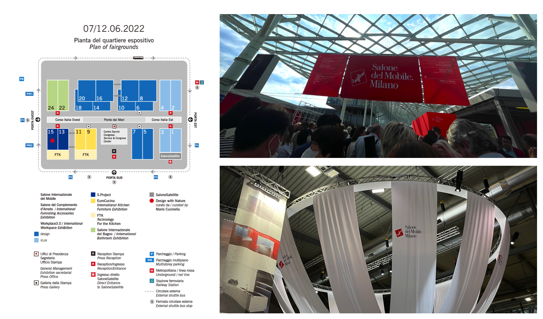 전시장은 총 24개 홀로 구성되어 있고 올해에는 9, 11, 13, 15 총 4개 홀에서 FTK(주방을 위한 기술)가 메인으로 선보여졌다. 이에 따라 Smeg, Siemens, Bora, Bosch 등 글로벌 키친 브랜드를 포함하여 삼성전자, LG전자 등 대한민국을 대표하는 가전업체도 이번 2022 밀라노 가구 박람회에 참가했다. 가전과 가구의 경계가 점차 사라지는 디자인 트렌드에 따라 많은 브랜드 제품들이 융합되어 부스를 장식한 모습을 볼 수 있었다.