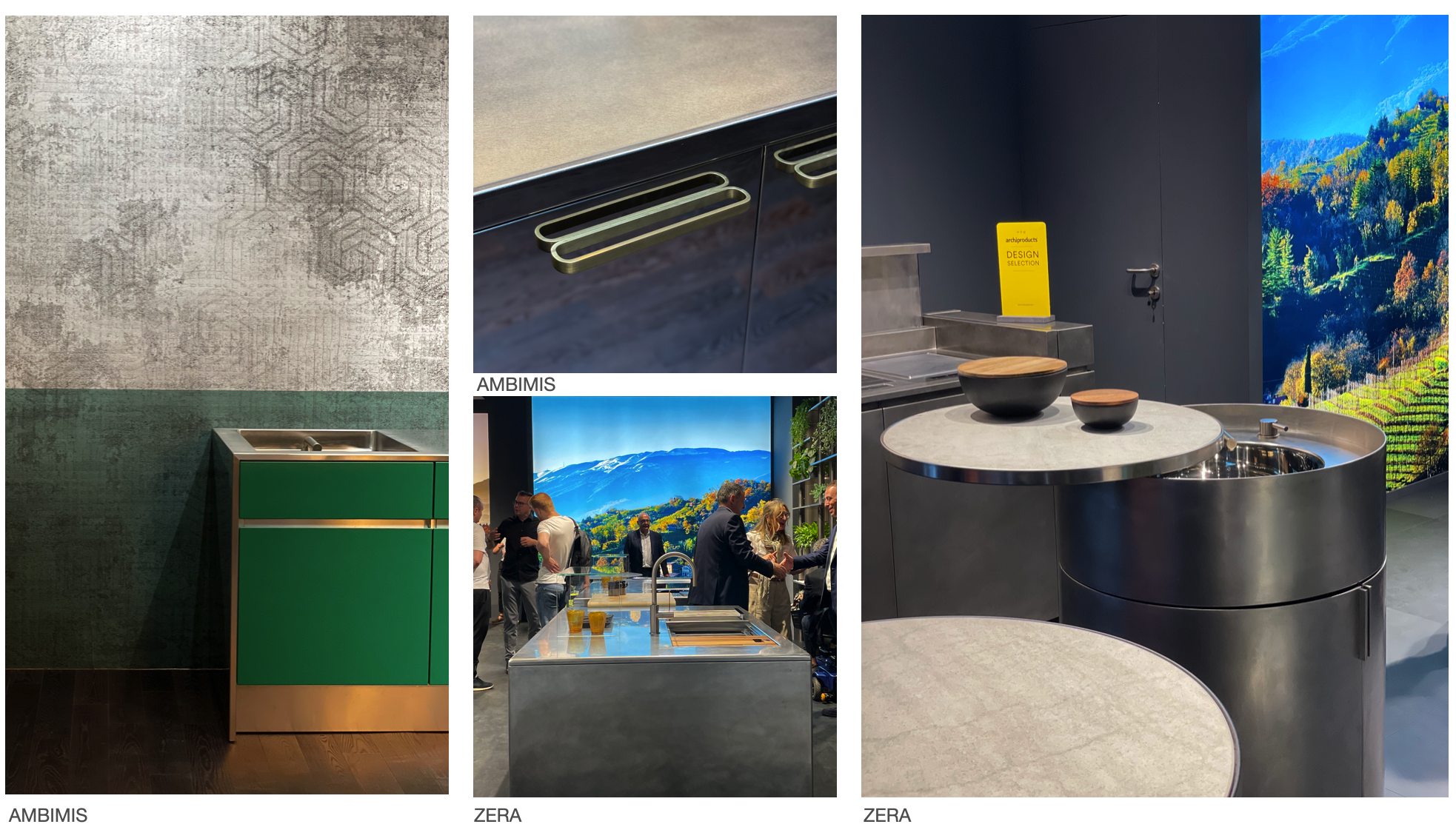 올해 살롱 델 모빌레에서는 야외 다이닝을 위한 아웃도어 제품들이 다수 보였다. 기존에도 지속적으로 관련 제품들이 출시되었으나, 올해는 보다 야외 다이닝에 적합한 소재와 형태의 디자인들이 더 강조되어 나타났다. ZERA는 스틸과 자연 풍경이 브랜드의 원재료라고 외치는 철강 가공 전문 회사로 아웃도어 키친에 대한 방향성을 이야기하고, 야외에서 사용 가능한 하이브리드 아웃도어 키친 신제품을 공개했다. 그 중 강철, 스틸, 나무 등 다채로운 재료를 사용하고 철강을 기반으로 한 제품들을 만드는 주방 디자인웨어 브랜드로서 부피를 최소화하고 비바람에 견딜 수 있는 소재의 제품들을 전시에서 선보였다. 이탈리아 주방 가구 브랜드 AMBIMIS 또한 야외 환경에 제약받지 않는 소재를 활용하여 제품을 제작했고, 실내와 실외 구분 없는 연결성을 보여주는 제품들을 선보였다.