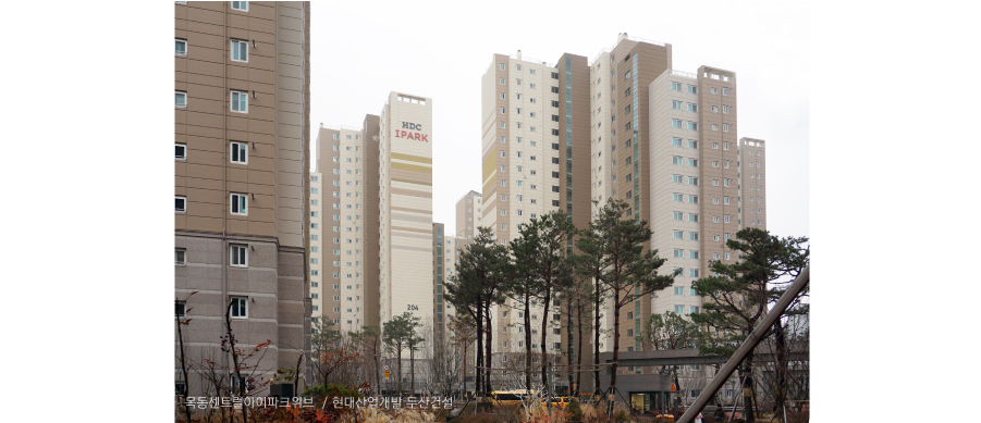 주변 공간과 아파트의 강조색에 적절히 녹아듭니다.