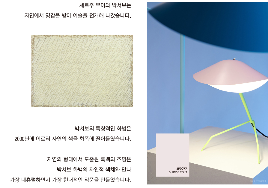 한국 단색화의 대가 박서보와 함께 최초로 제품에 색을 입혔습니다.