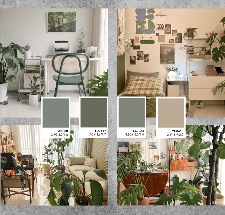 이처럼 Grayish 컬러는 넓은 면적에 주조색으로 사용해도 어색함이 없고,