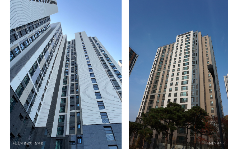 특히 점차 Grayish하게 변해가는 아파트 외부 색채의 경우에서