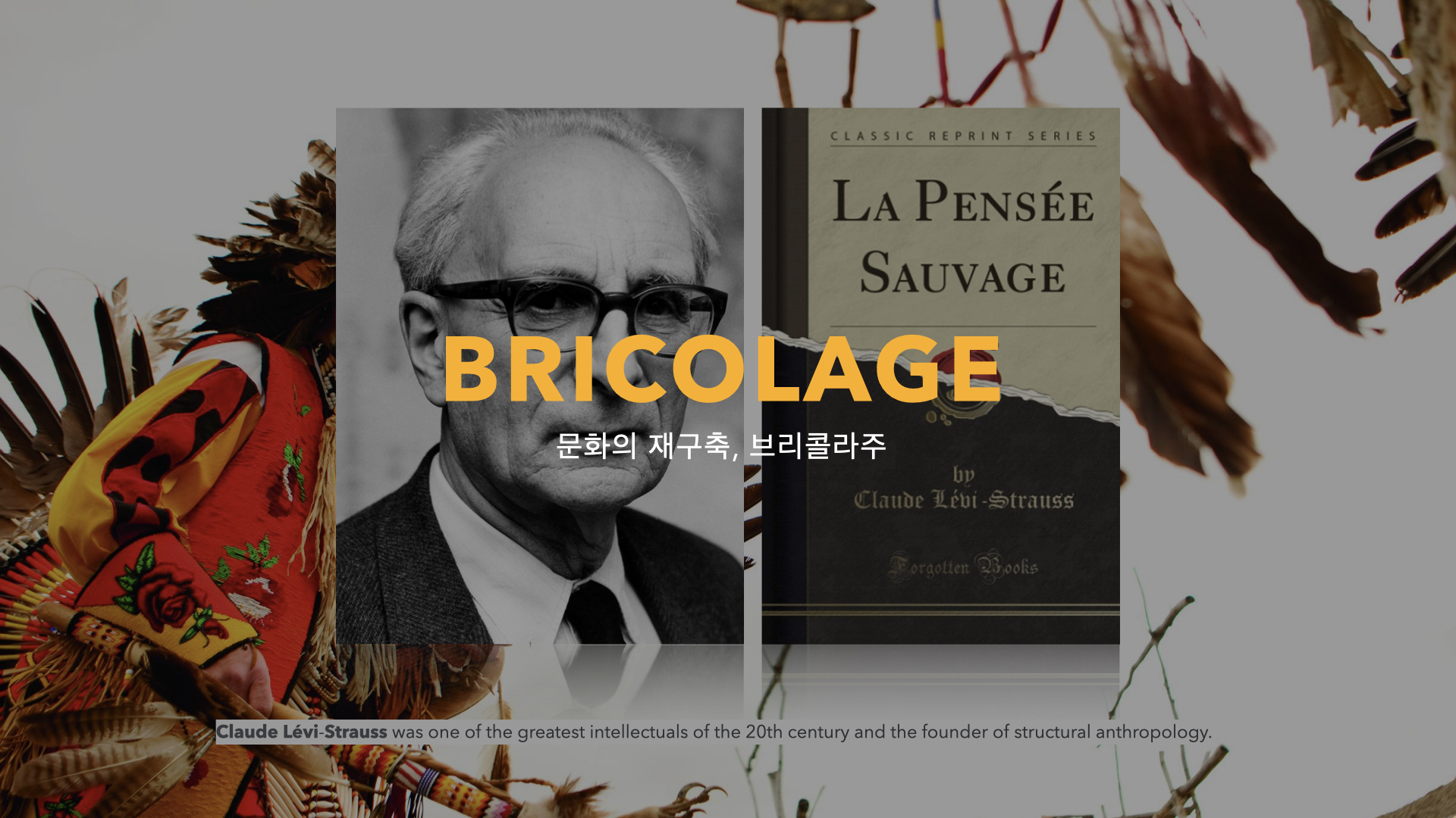프랑스 인류학자 Claude Levi Strauss(클로드 레비 스트로스)는 저서 <야생의 사고>에서 Bricolage(브리콜라주)의 의미를 새롭게 해석하였다. 브리콜라주는 프랑스어로 손재주꾼을 뜻하는 말이지만, 그는 브리콜라주를 주어진 환경에서 손에 닿는 재료를 가지고 창조적 활동을 하는 문화의 재구축으로 해석하였다. 실제로 레비 스트로스 이전의 서양 인류학자들에게 원주민의 문화는 미개하고 미신적인 것이라는 인식이 보다 지배적이었지만, 레비 스트로스는 탈(脫) 고정관념 현상을 주축으로 인정과 배제 그 사이에서 소수의 문화를 새롭게 받아 들임으로써 공존하는 사회에 대한 방향성을 제시한다. 이러한 탈(脫) 고정관념현상과 더불어 인정을 통해 공존하는 문화의 변화는 현 시대에 주목할 부분이다.