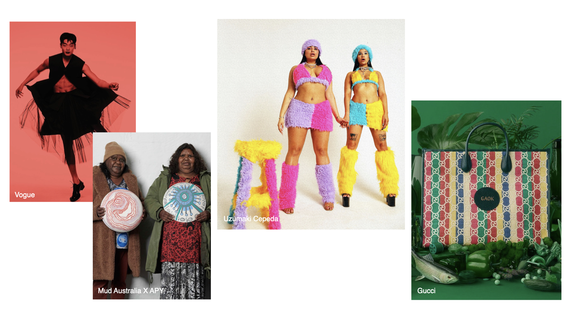 이처럼 다시 주목받고 있는 전통과 민족의 역사는 강렬한 오브제와 메세지로 표현된다. 고유 패턴, 패치워크, 벨벳 텍스쳐 등 민족의 정체성이 담긴 비정형의 디자인들은 이러한 다양성의 분위기를 더욱 고조시킨다. 매체와 더불어 브랜드들의 국가와 문화의 다양성을 존중하는 움직임은 브랜드 정체성을 강화시키는데 주 요소로 자리 잡는다. 지난해 5월 한남동에 위치한 구찌 가옥은 한국의 전통 컬러와 패턴에서 영감 받아 현대적으로 재해석되었다.