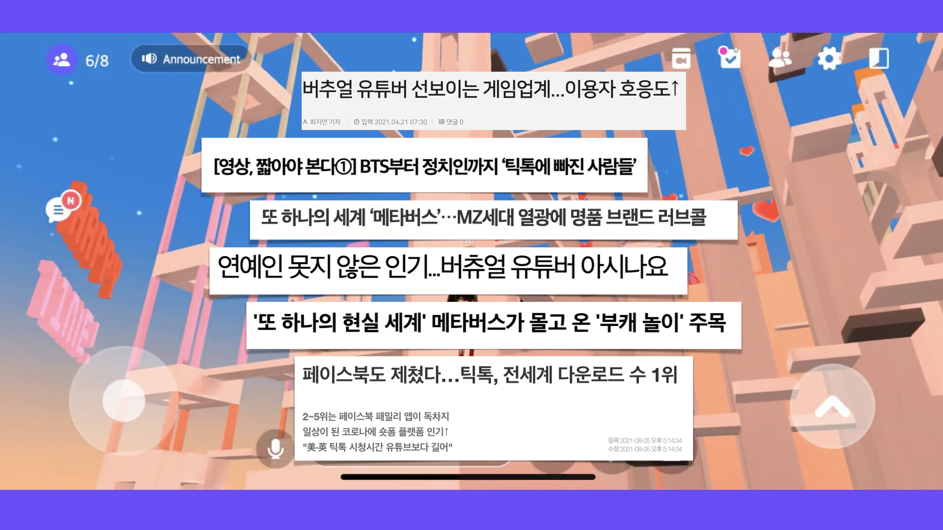현재 ‘실시간’과 관련된 SNS 해시태그 수는 93만 건이 넘어섰고 네이버, 쿠팡, SSG 등의 대형 온라인 커머스 시장을 포함하여 다양한 산업 분야에서 쇼핑 라이브 콘텐츠가 다채롭게 보이고 있다. 5G를 비롯한 통신 관련 기술들이 뒷받침되면서, 라이브 커머스 콘텐츠는 단순히 비대면의 목적을 넘어서 판매자와 소비자의 소통 채널로서 주목받고 있다. 또한 절제를 요구하는 삶이 강화되면서 가상 현실에 대한 수요는 지속적으로 증가하고 있다. 초현실 세계이자 현실 도피의 공간으로 떠오르고 있는 메타버스 속에서, 사람들은 부캐(부캐릭터)로서 새로운 디지털 라이프 스타일은 보여 준다. 나와 닮거나 혹은 그 반대의 모습으로 아바타를 설정하여 물리적 제약 없이 실시간으로 사람들과 소통하고, 직접 원하는 공간을 꾸미거나 아바타의 옷을 만들어 팔기도 하는 등의 다채로운 활동을 보인다.
