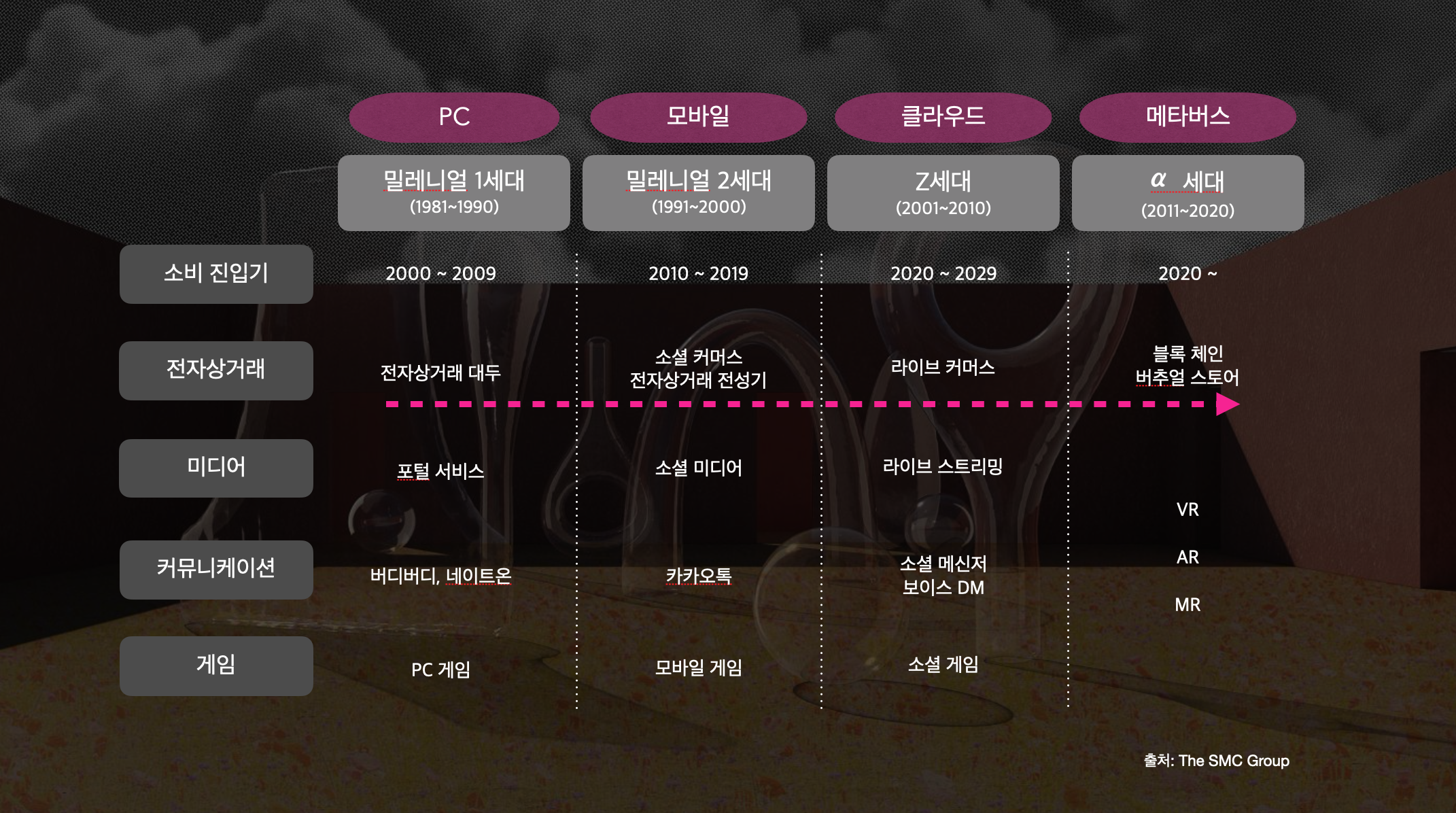 이처럼 기술의 발전과 통신망의 보급으로 가상 공간으로의 도피와 디지털 페르소나를 통해 자아실현을 하는 사람들이 늘어나면서, 가상 화폐 가치에 대한 논의 또한 계속되고 있다. 그리고 이러한 상황에서 산업 전반에 거쳐 강력한 소비주체인 MZ 세대가 가상 화폐 시장을 주도하고 있다. 국내 가상화폐 거래 금액은 2021년 3월 기준 730조에 달했고, 이는 2020년 11월 45조가량의 금액 추이와 비교했을 때 엄청난 증가세를 보인다. 지속적인 사회적 이슈들로 인해 가상화폐에 대한 불안정성과 급격한 금액 변동들이 발생함에도 불구하고, 그 관심은 지속되고 있는 상황이다.