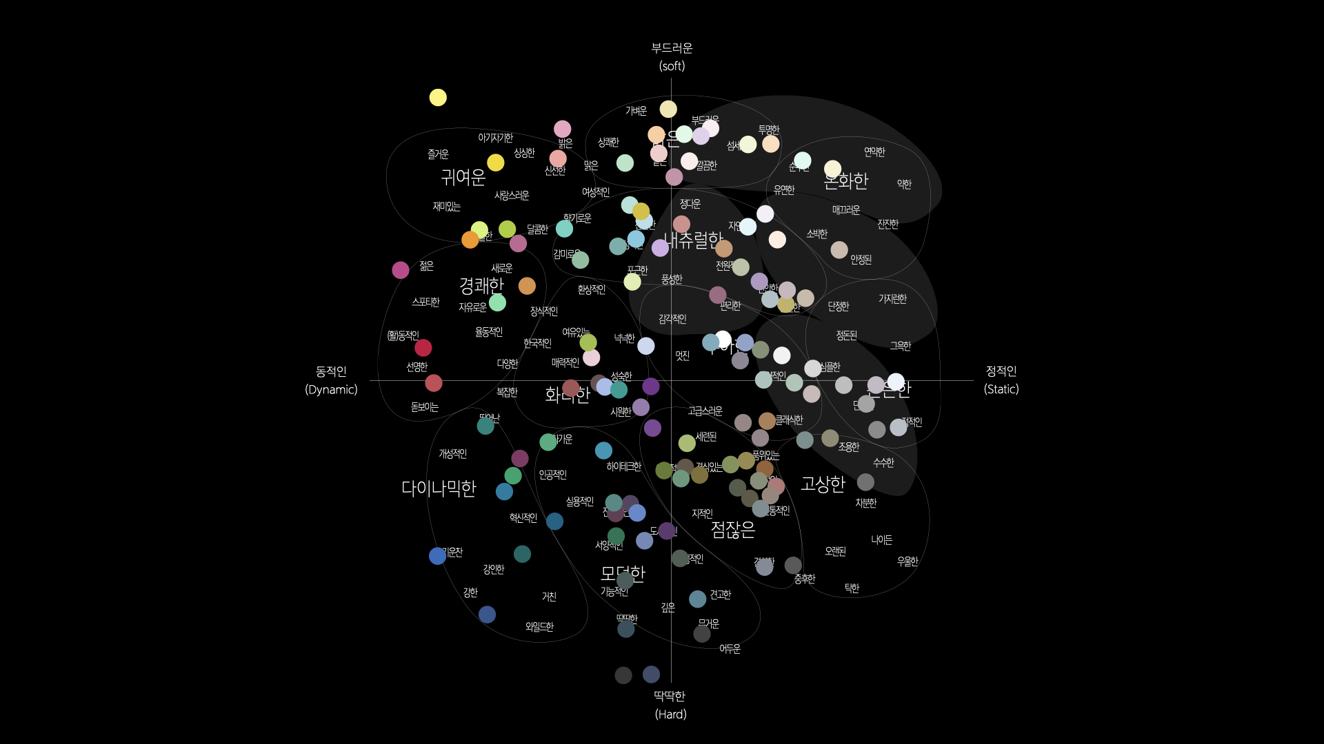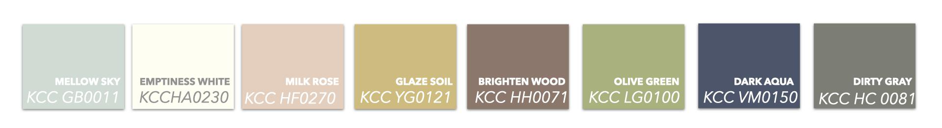 2022 KCC Trendpulse 인테리어 두번째 테마, 비움의 가치 'Emptiness Value'에서 소개할 팔레트는 우리 주변 불필요한 것들을 비우고, 본질에 집중하기 위한 비움의 컬러들을 다루고 있다. 이번 테마에서 다룬 공간의 특성들을 IRI 형용사 이미지 스케일로 살펴보면, 가벼운, 맑은, 내츄럴한 등과 같은 형용사로 연결되고, 이는 이미지 스케일 상에서 다음과 같은 컬러들로 보여지게 된다. 이 중 여덜까지의 컬러를 선정 해 두 번째 테마의 최종 팔레트를 선정하였다.